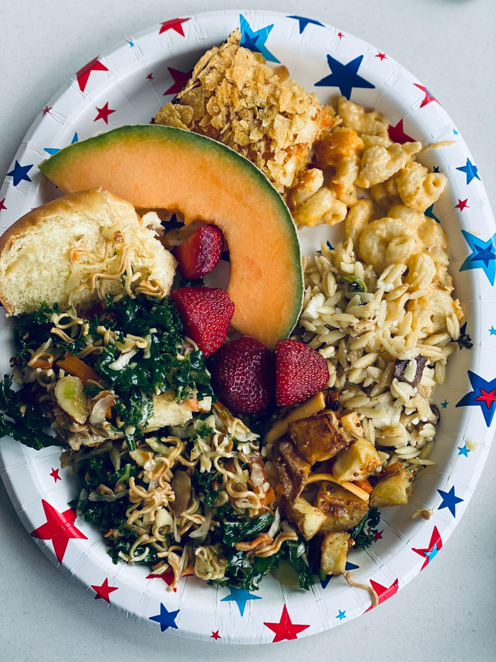 I mean this summer plate has two kinds of potatoes and two kinds of pasta so this is a definitely success, right? Oh and bread. Hahaha. And more noodles in the slaw. Wow.