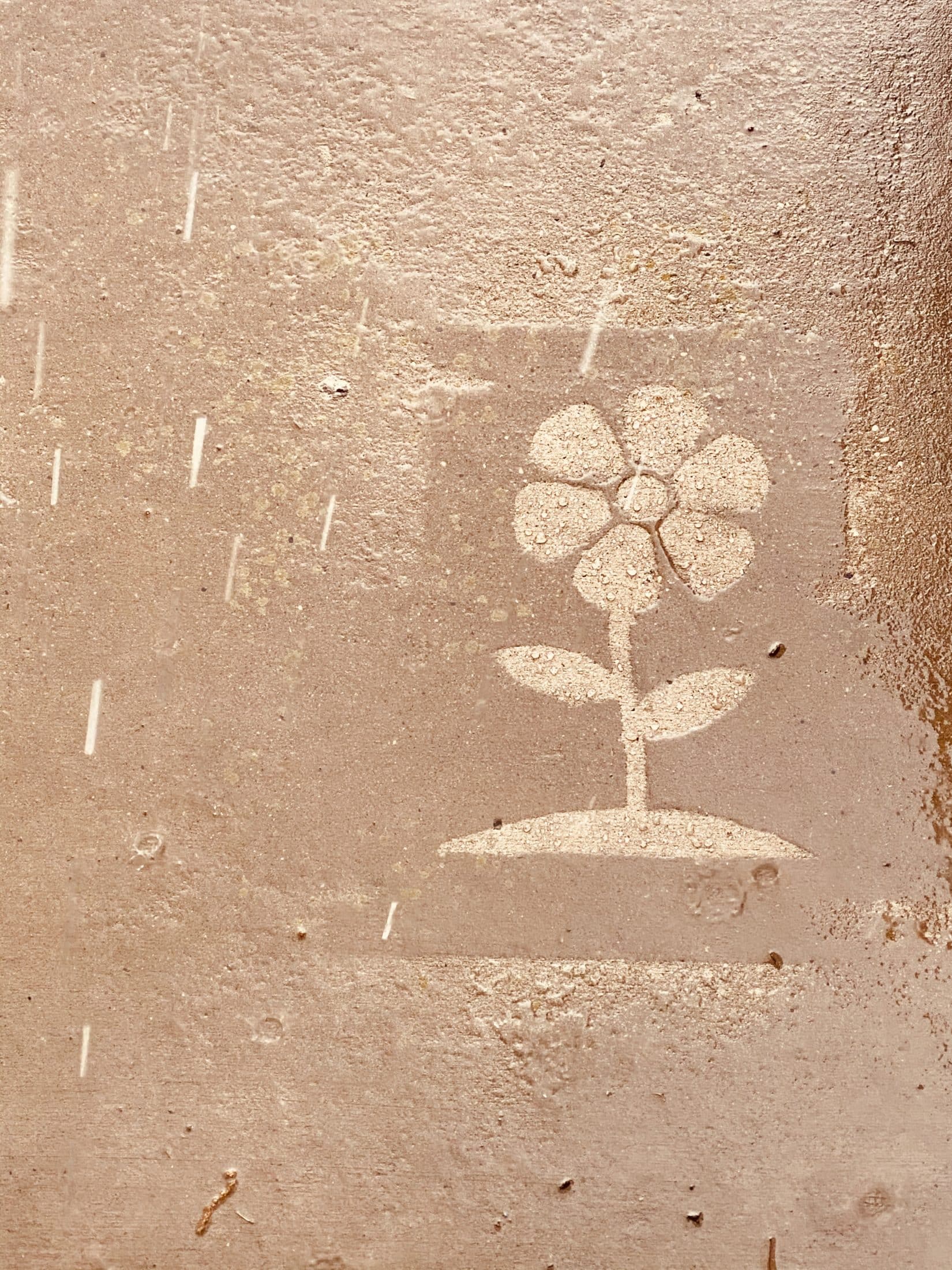 We tried this rain proof art that shows up on the sidewalk – only when it’s wet! It’s so cute.