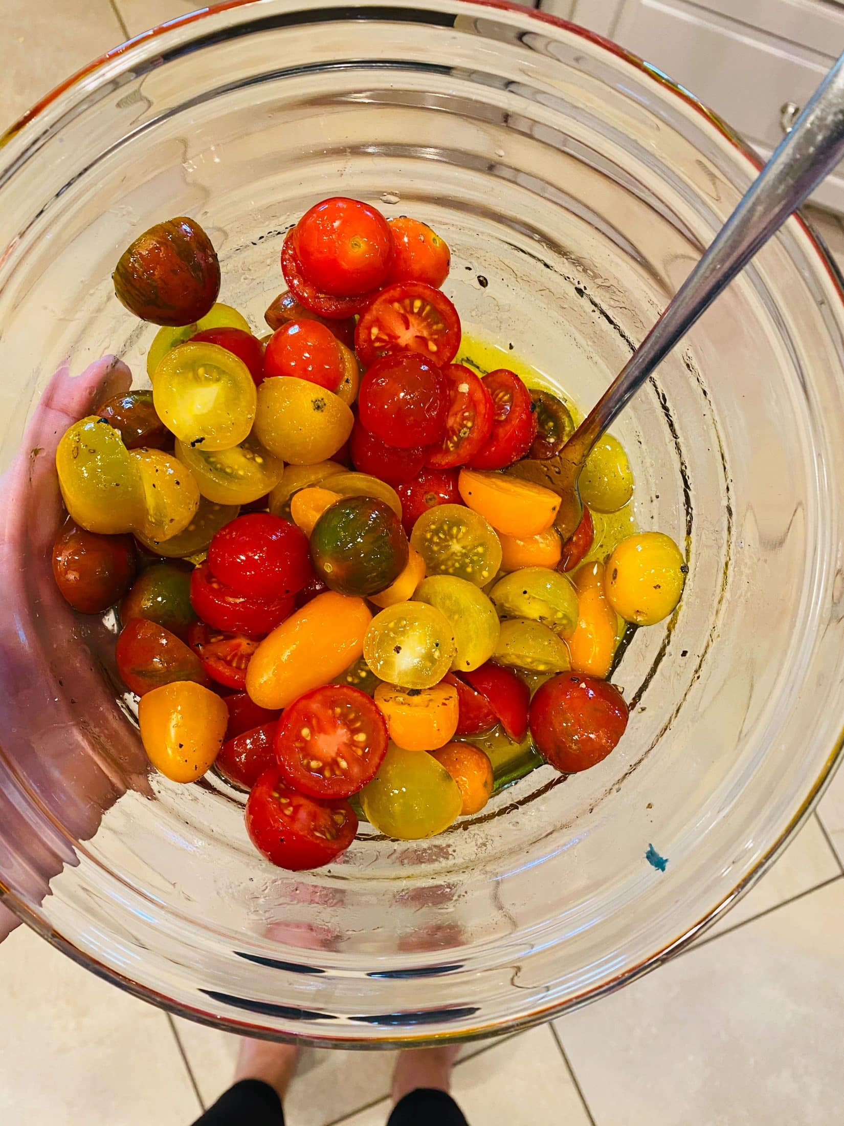 I love that veggies aren’t your favorite things but you go out of your way to make the roasted ones – they look beautiful! Our tomatoes are starting to come in and the vines are already about 5-6 ft. tall. They go nuts like this every year. But we love them so keep up the tomato recipes – thanks!
