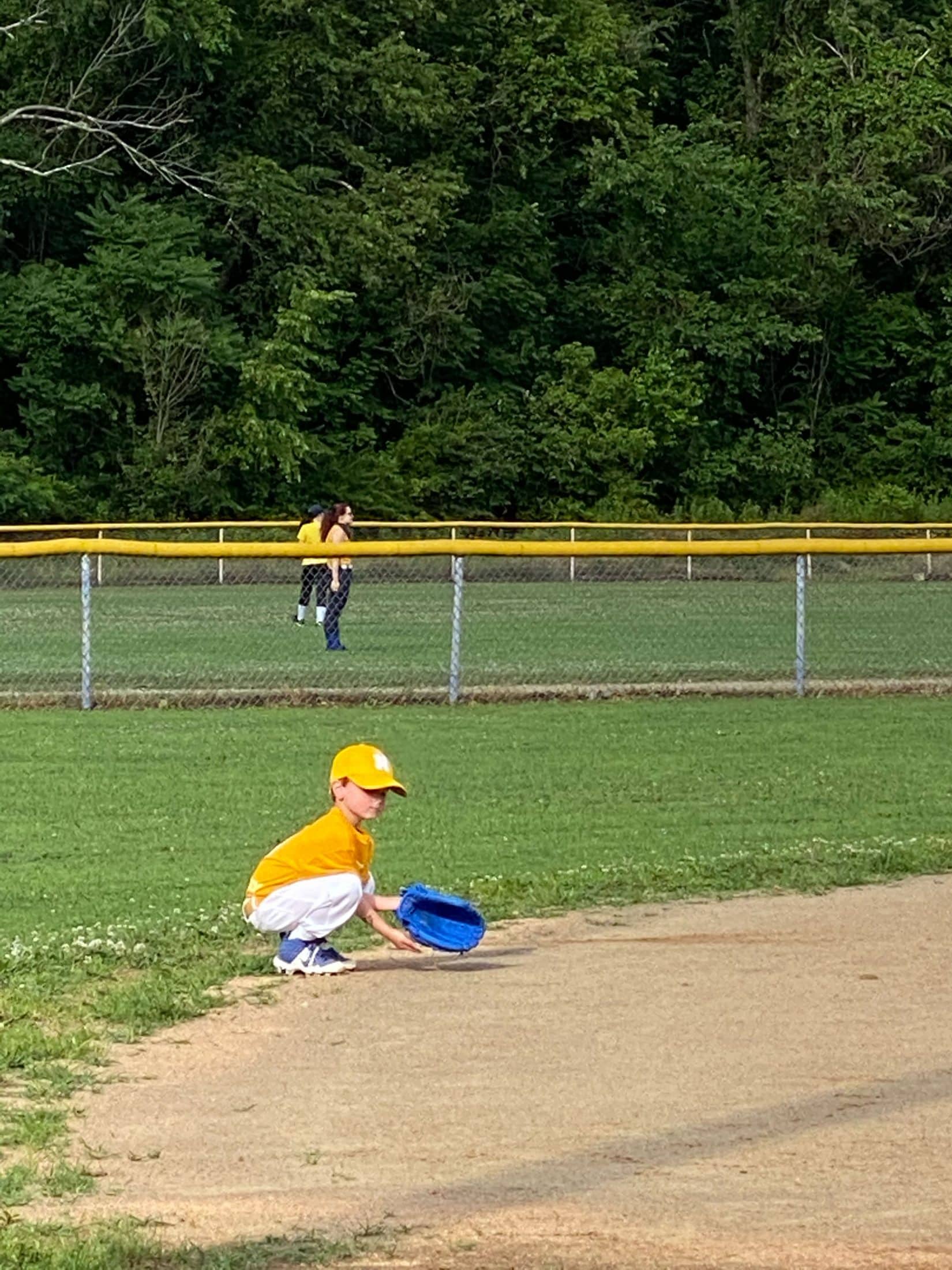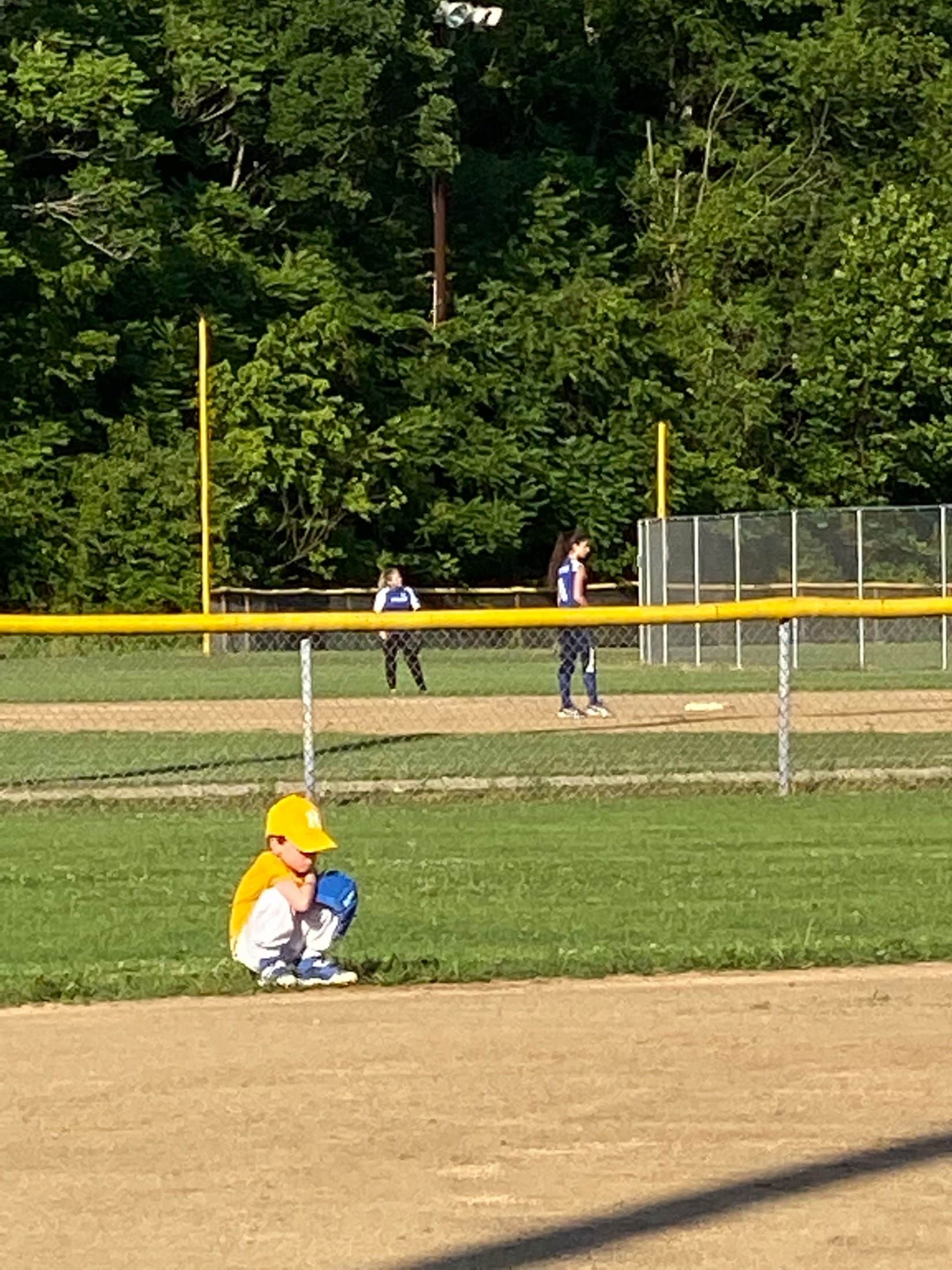 A very zoomed in pic… but I mean I can’t take how hilarious it is watching t-ball. It’s equal parts watching paint dry and endearing. The amount of kids that end up sitting down in the outfield, playing with dirt, dancing around – it kills me! So funny and cute.