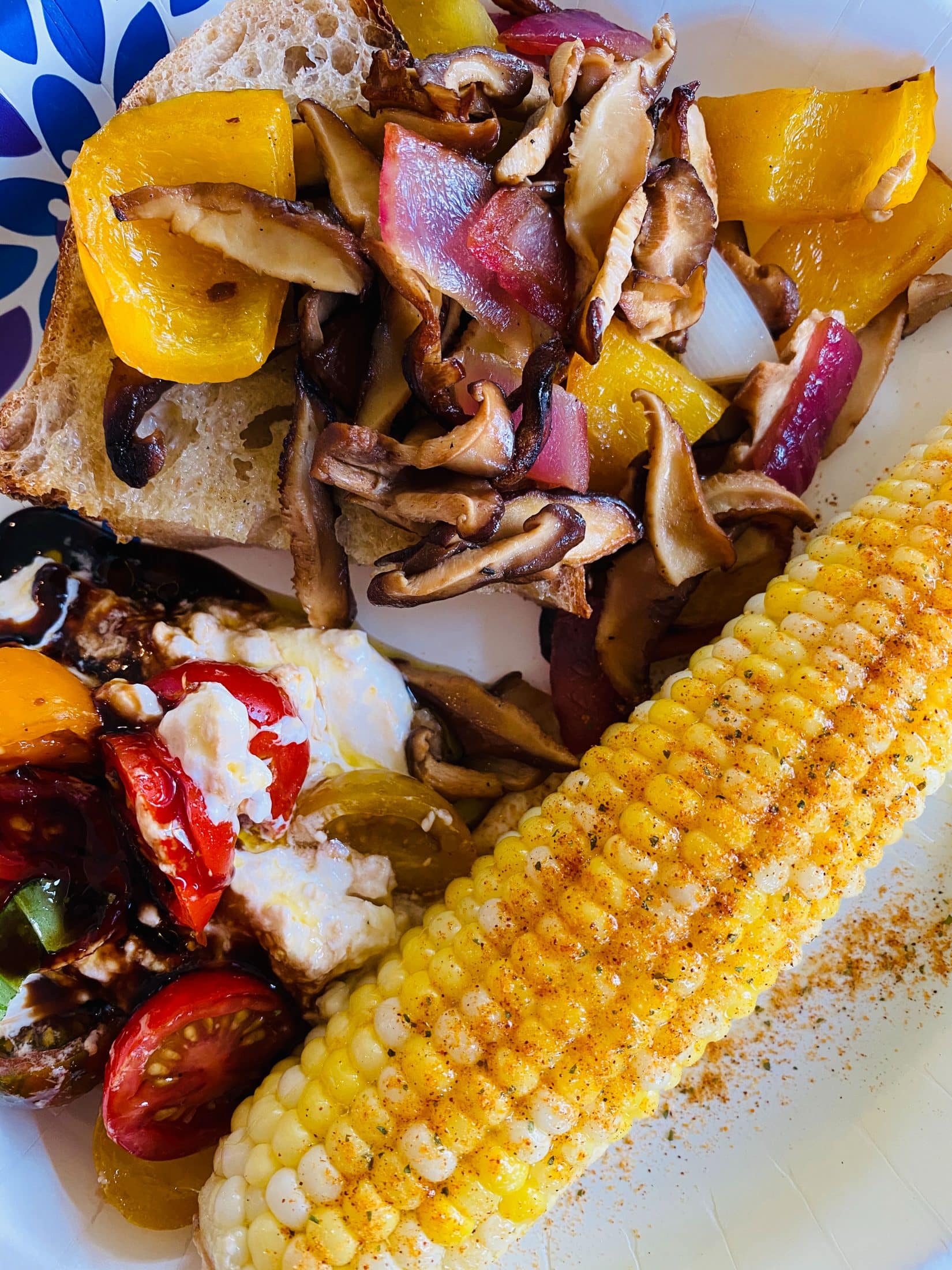 The perfect summer dinner! I put the TJ’s elote seasoning on the corn… oh my gosh. I dream of this summer meal!