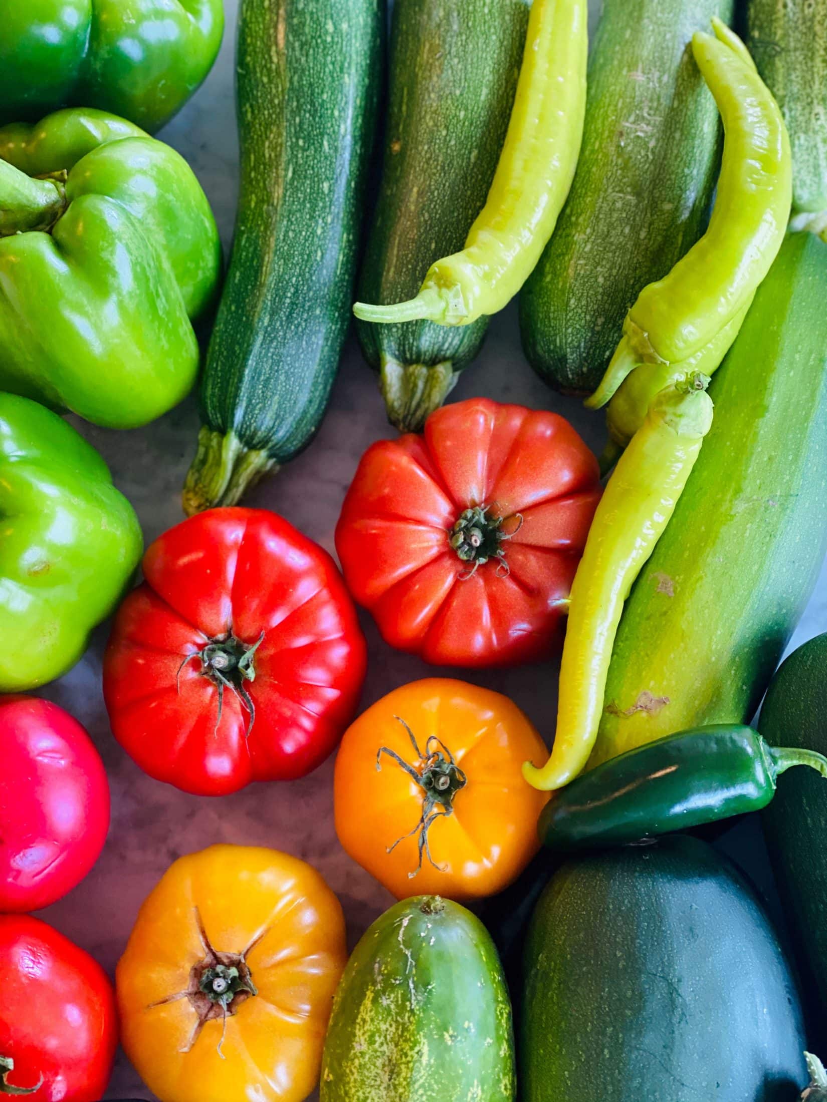 Summer bounty! Our neighbors gave us amazing cucumbers and zucchini and banana peppers and jalapeños! It’s going to be a delicious week. xo