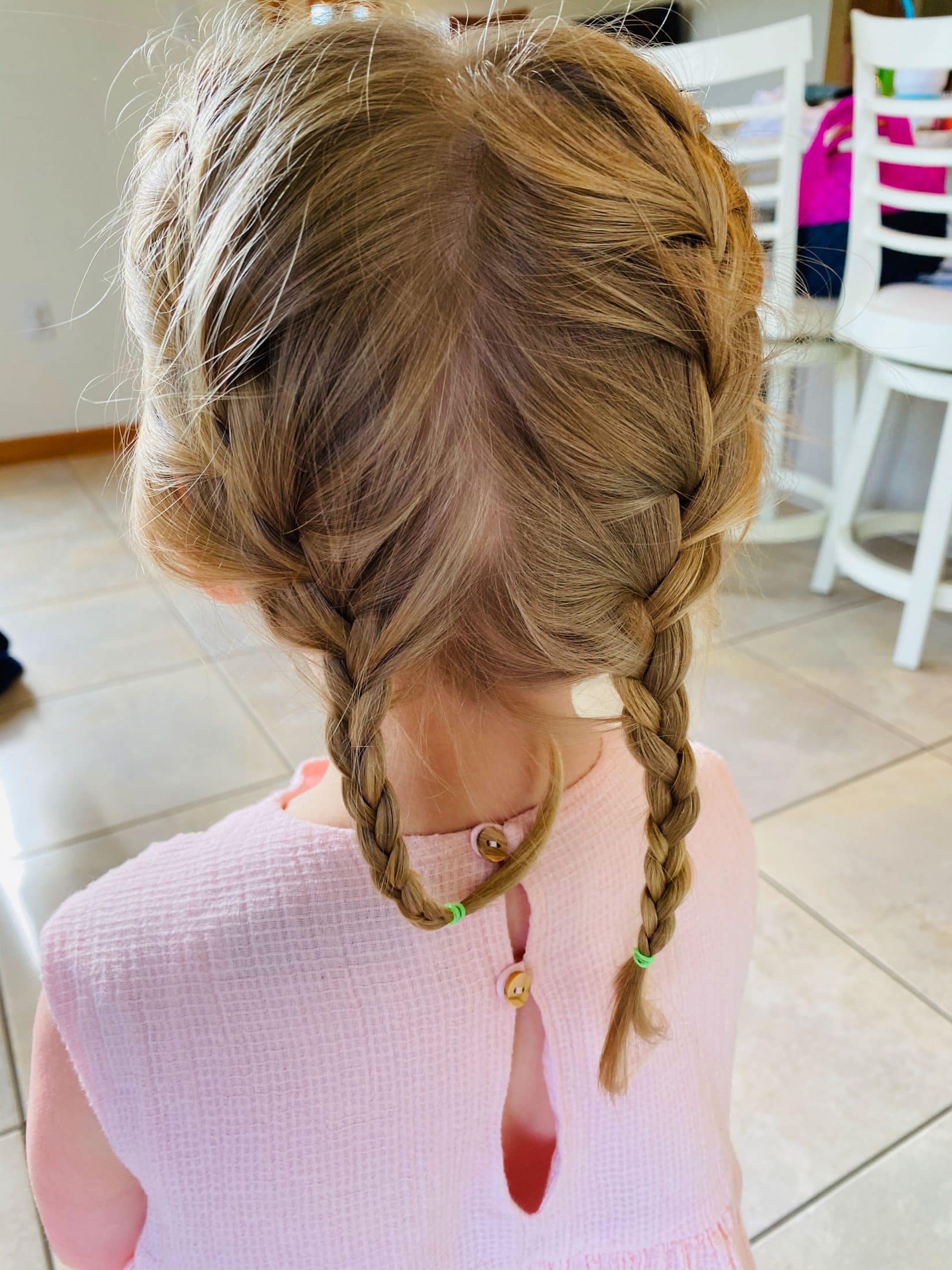 First french braids!! She is SO EXCITED. Sometimes I french braid my hair after I get out of the shower and she always asks if I “have my braids on.”