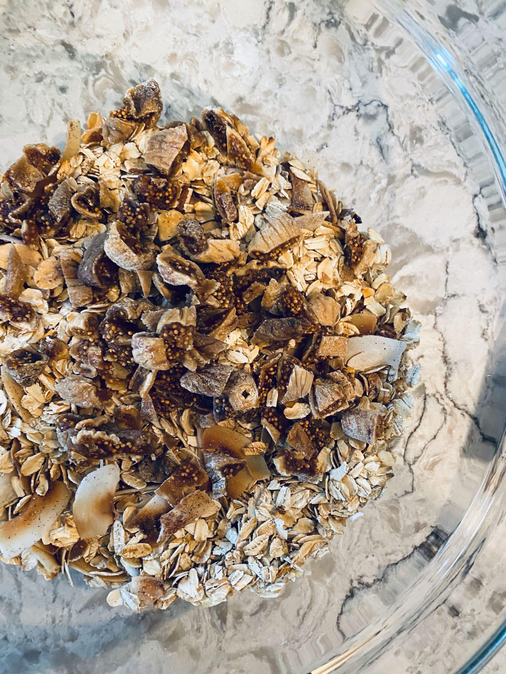 This looks weird but it’s a batch of toasted oat muesli I made to have for the week in overnight oats. There are figs in there too.