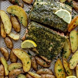 Sheet Pan Pesto Salmon with Lemon Potatoes