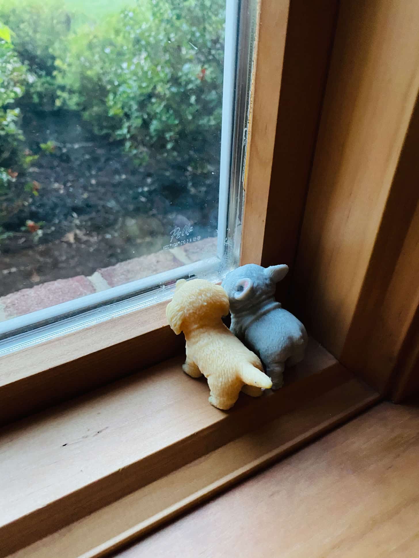 These are Emilia’s “party puppies.” They were watching all the trucks dig outside for the neighbors who are getting a pool. She is so funny.