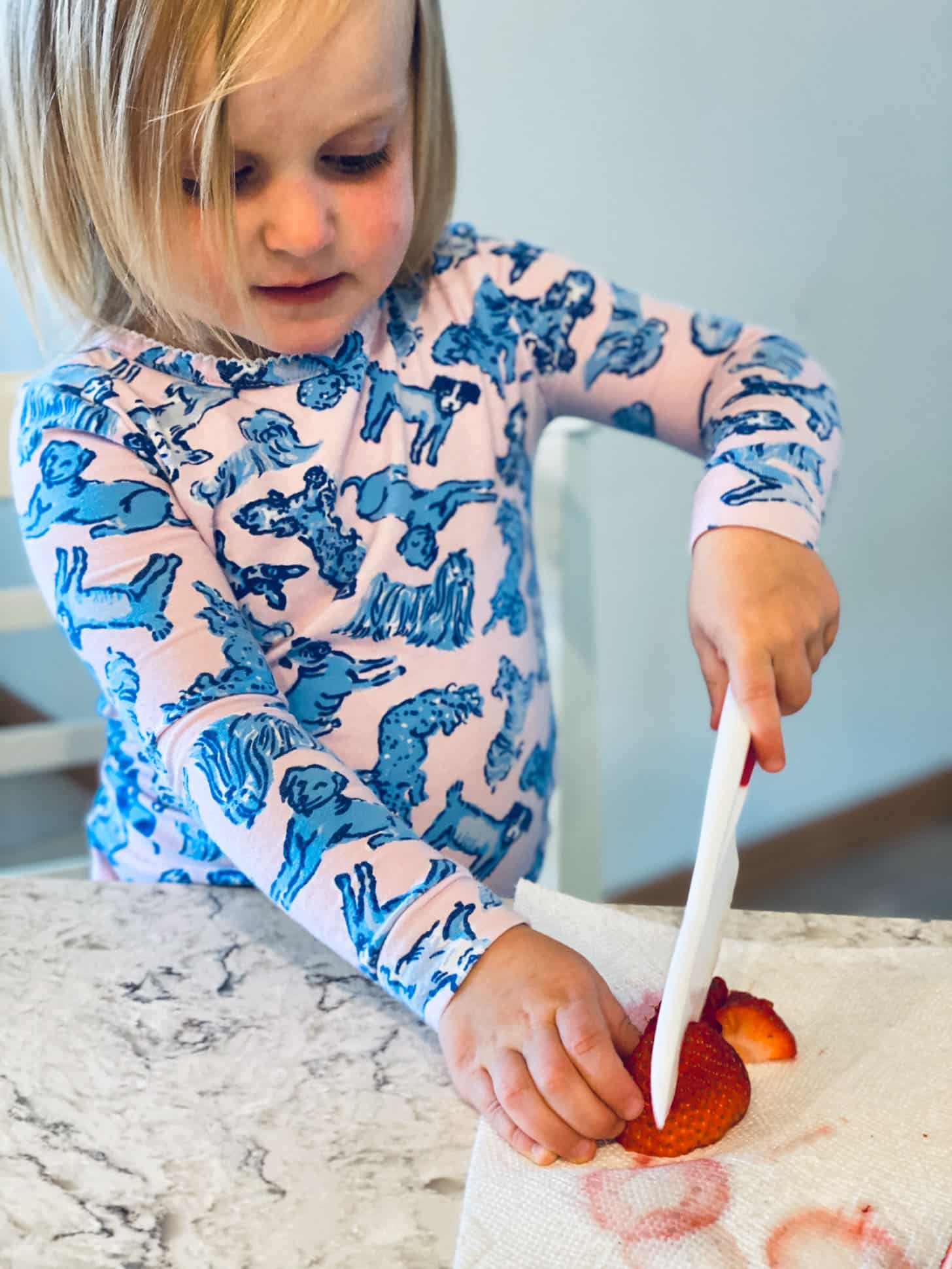 Making herself a little snack. These are the knives.