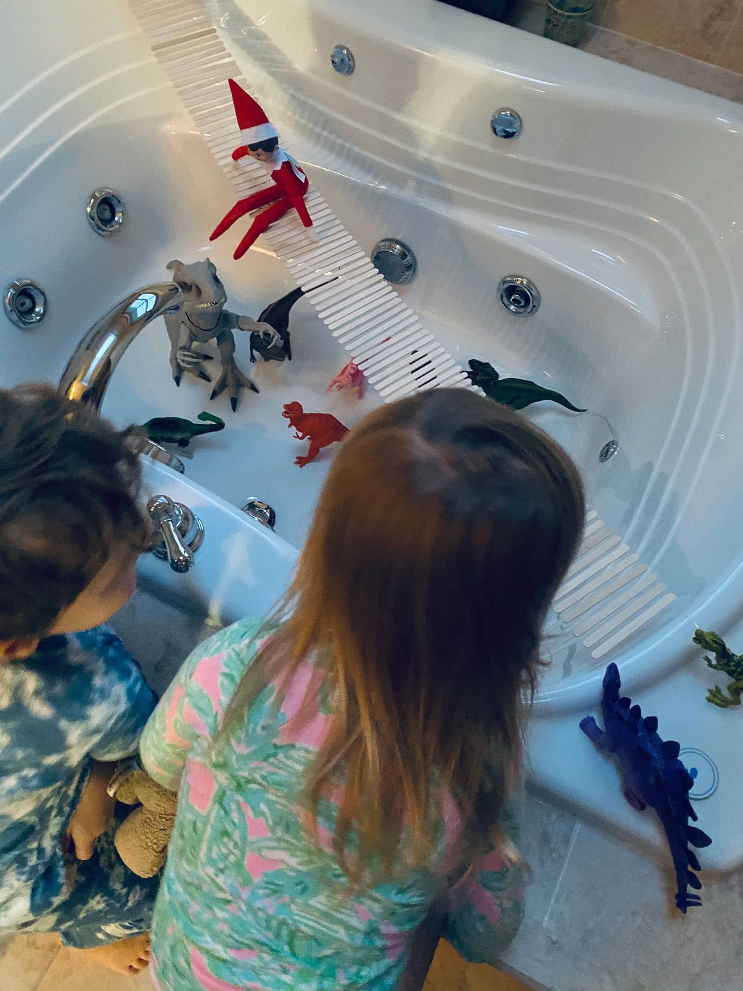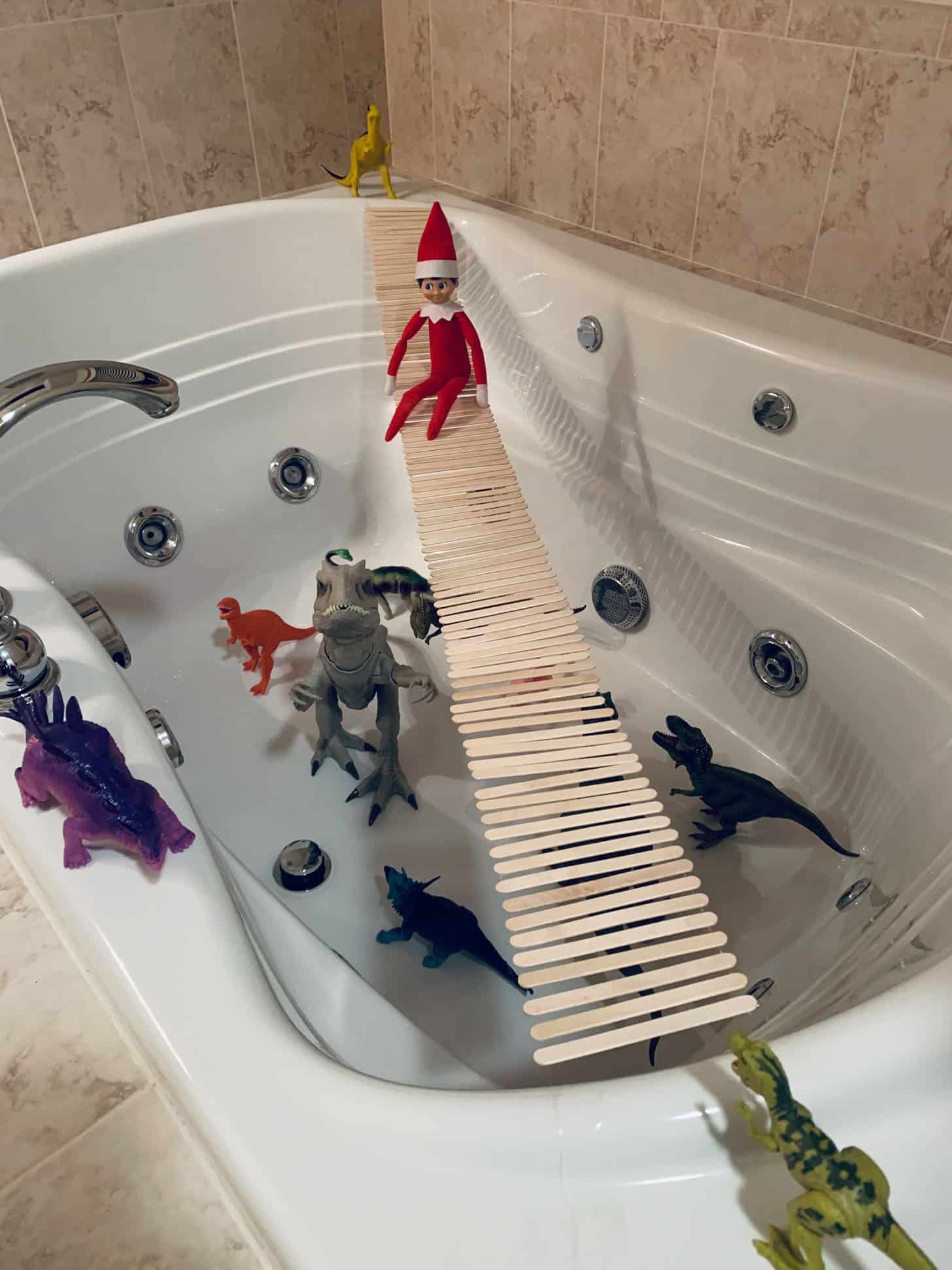 Our elf returned and Eddie 100% manages it. He is super creative and has the best ideas – also spends hours at night setting it up!