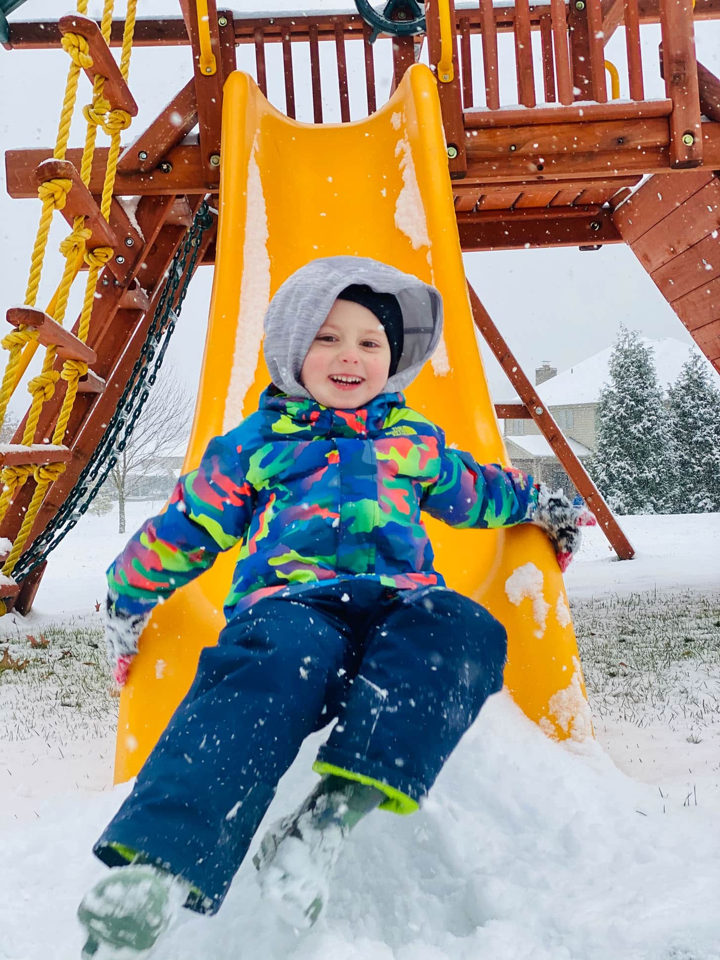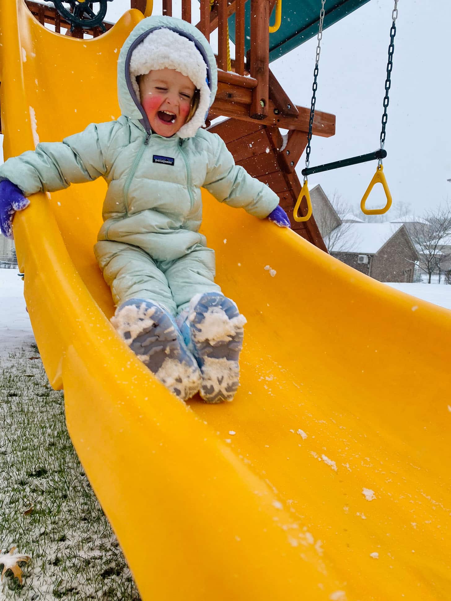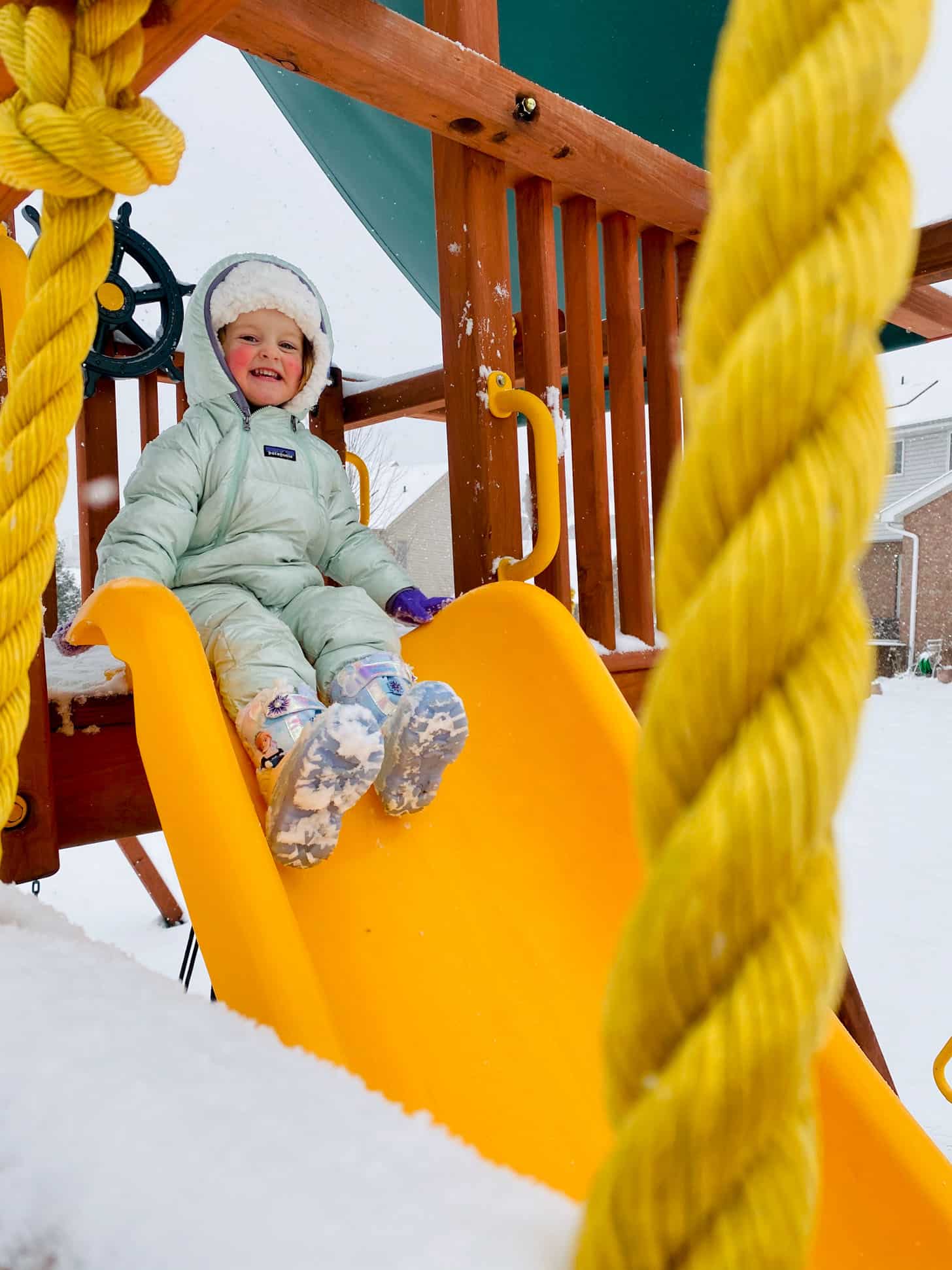 The slide is much more tempting in the snow.