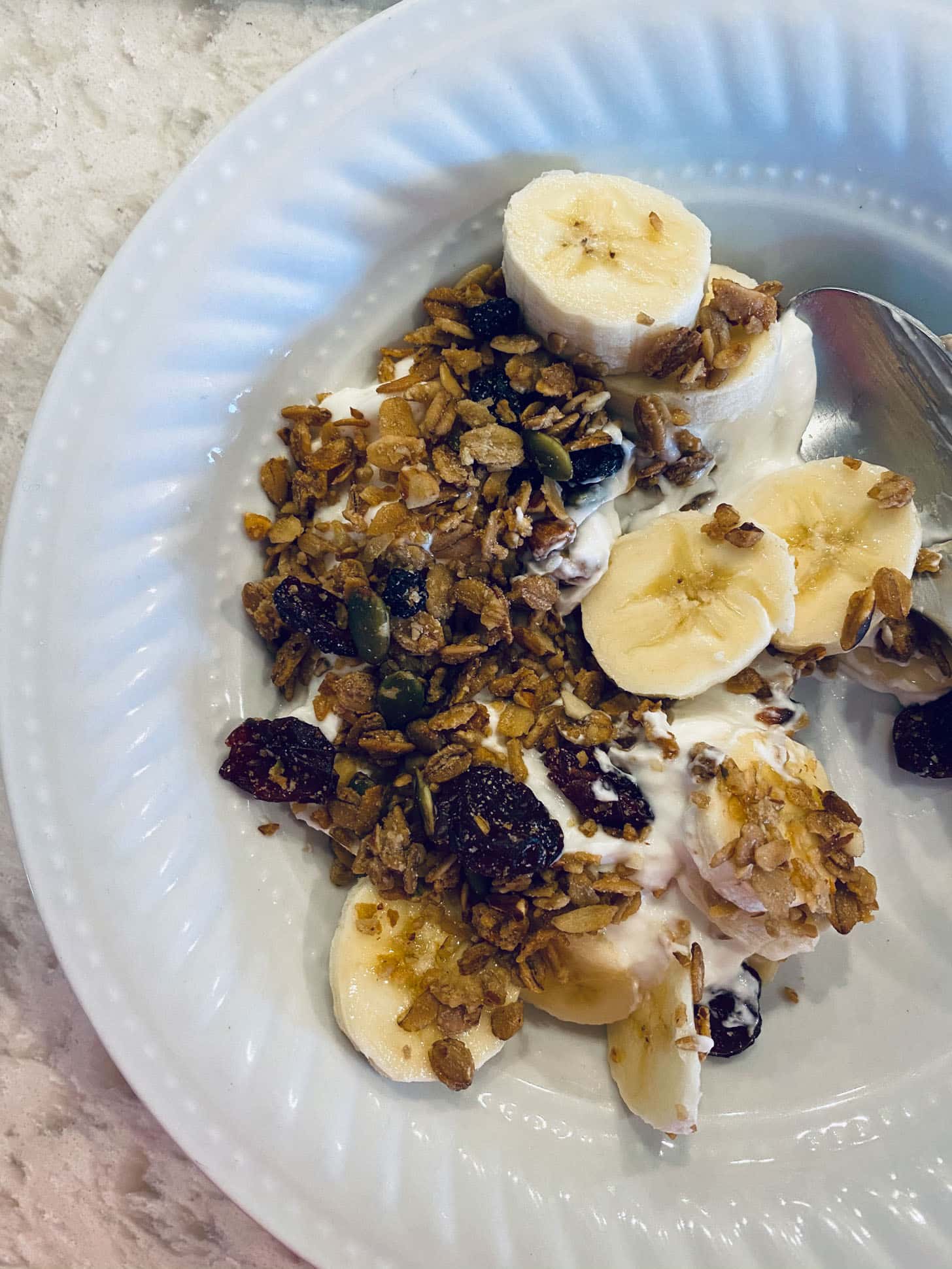 Living for this breakfast combo! It’s the american spoon maple granola, plain yogurt, banana, honey and cinnamon. So good.