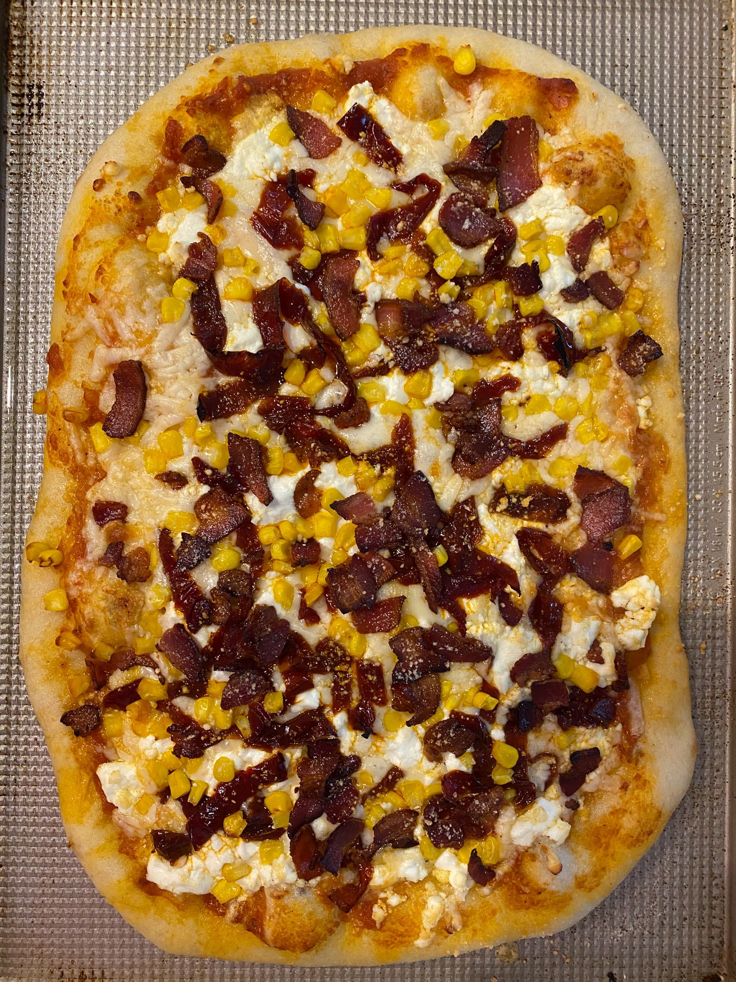 This one had roasted red peppers, bacon, goat cheese and corn. Kind of a clean-out-the-fridge deal. Amazing.