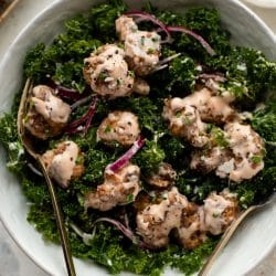 We love kale salads in this house. They are chewy in the best way. Leftovers hold up for lunch the next day because they are so hearty. They take on so many different flavors, but can hold more ingredients than regular old salads. We’re obsessed.