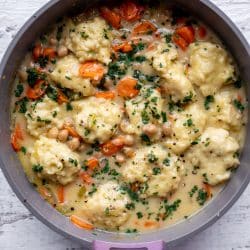 Thank you for this recipe. I had never even made traditional chicken and dumplings, so was nervous about the dumpling part, but this was so easy. My friend gave me fresh herbs from her garden and I think that really helped this be even better. I’ll be making this regularly for my vegetarian husband. Delicious!