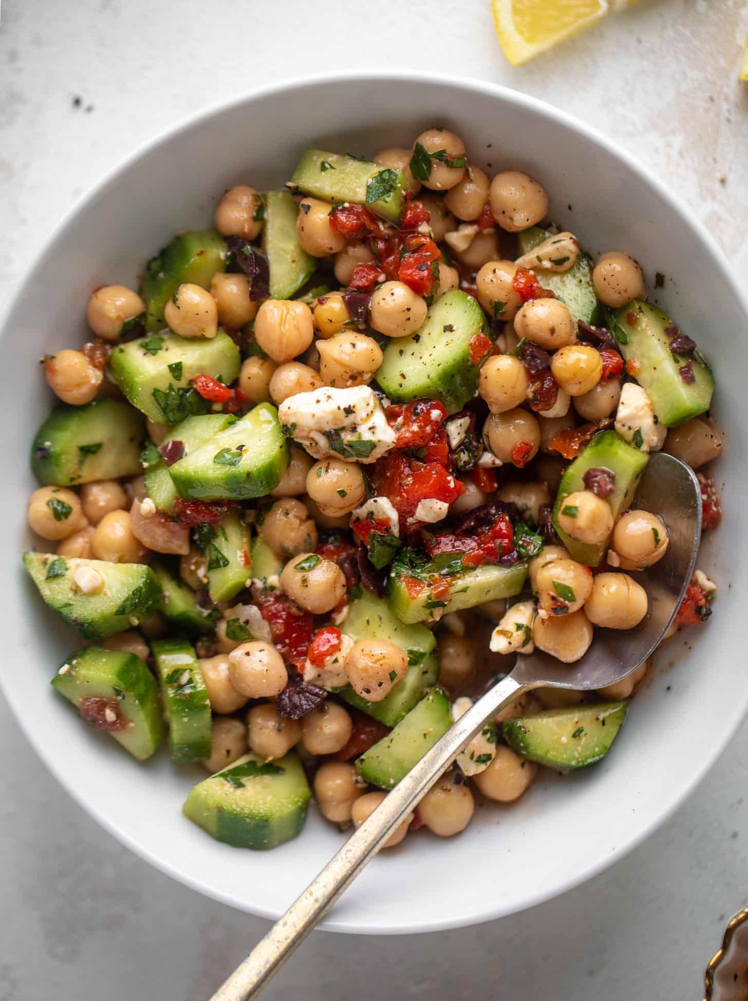 My marinated mediterranean chickpeas are your new lunchtime BFF.