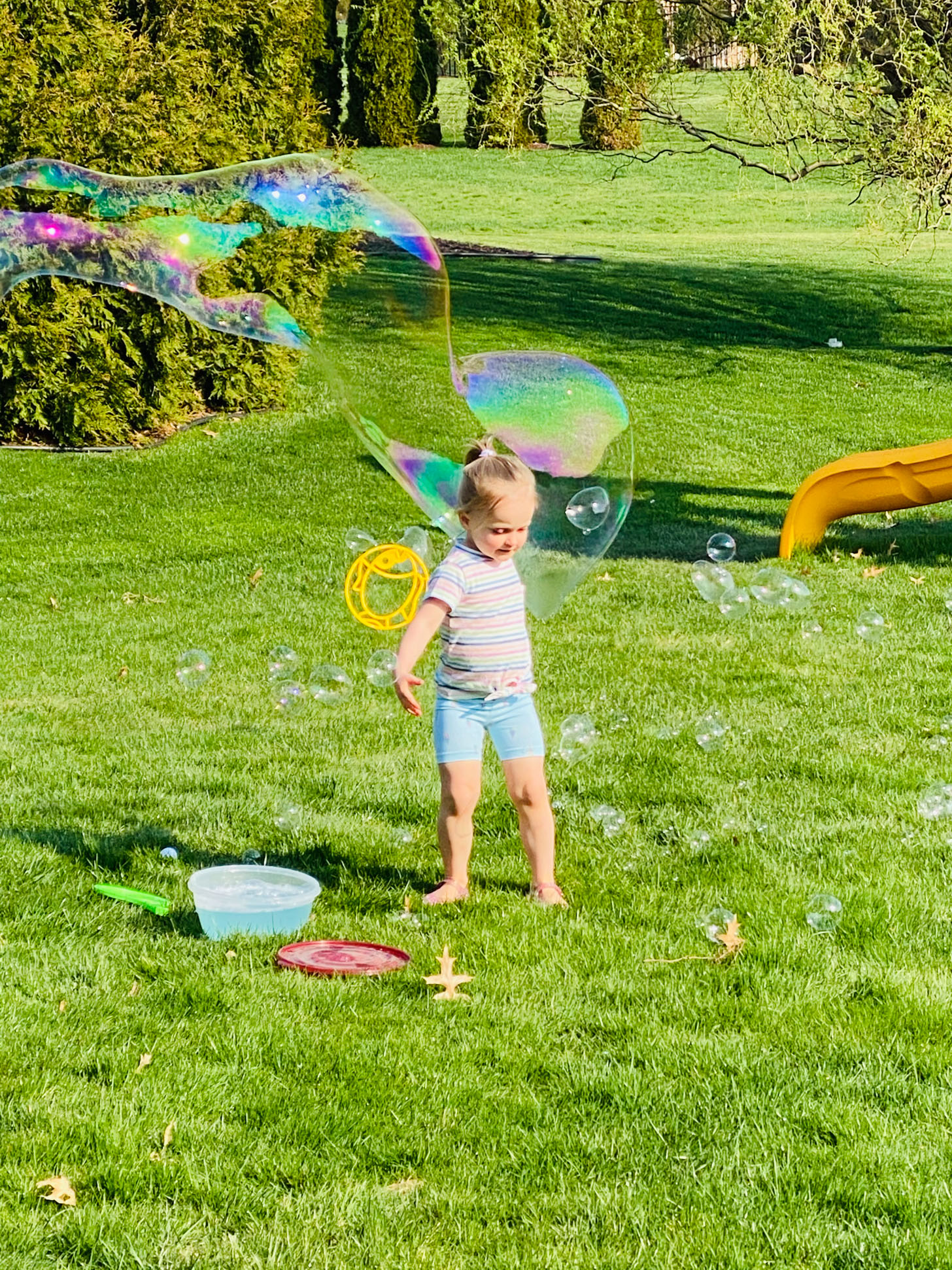Bubble fun! The easter bunny brought some of these huge bubble wands.