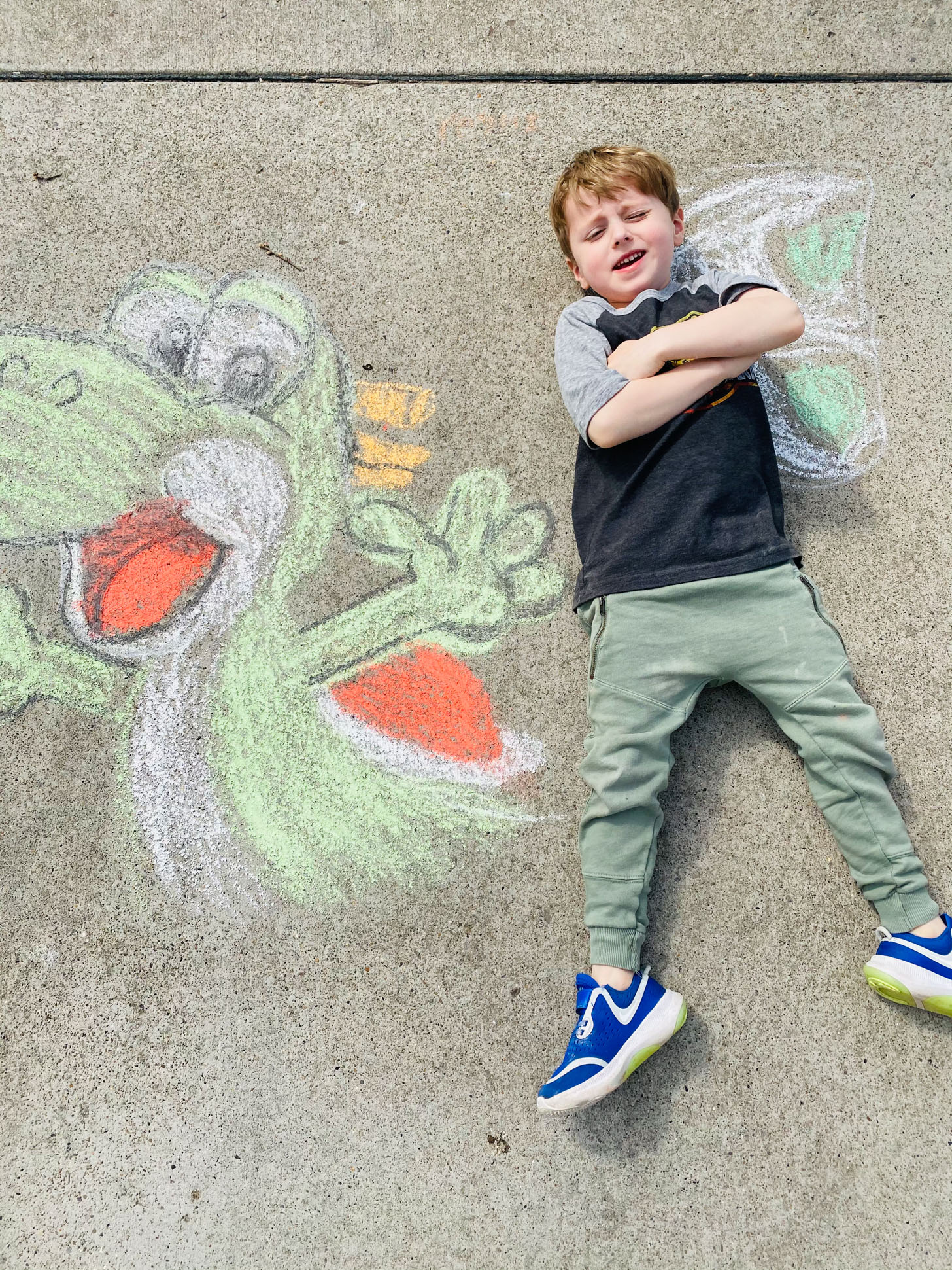 Max was verrrry excited about this lifesize yoshi chalk drawing!