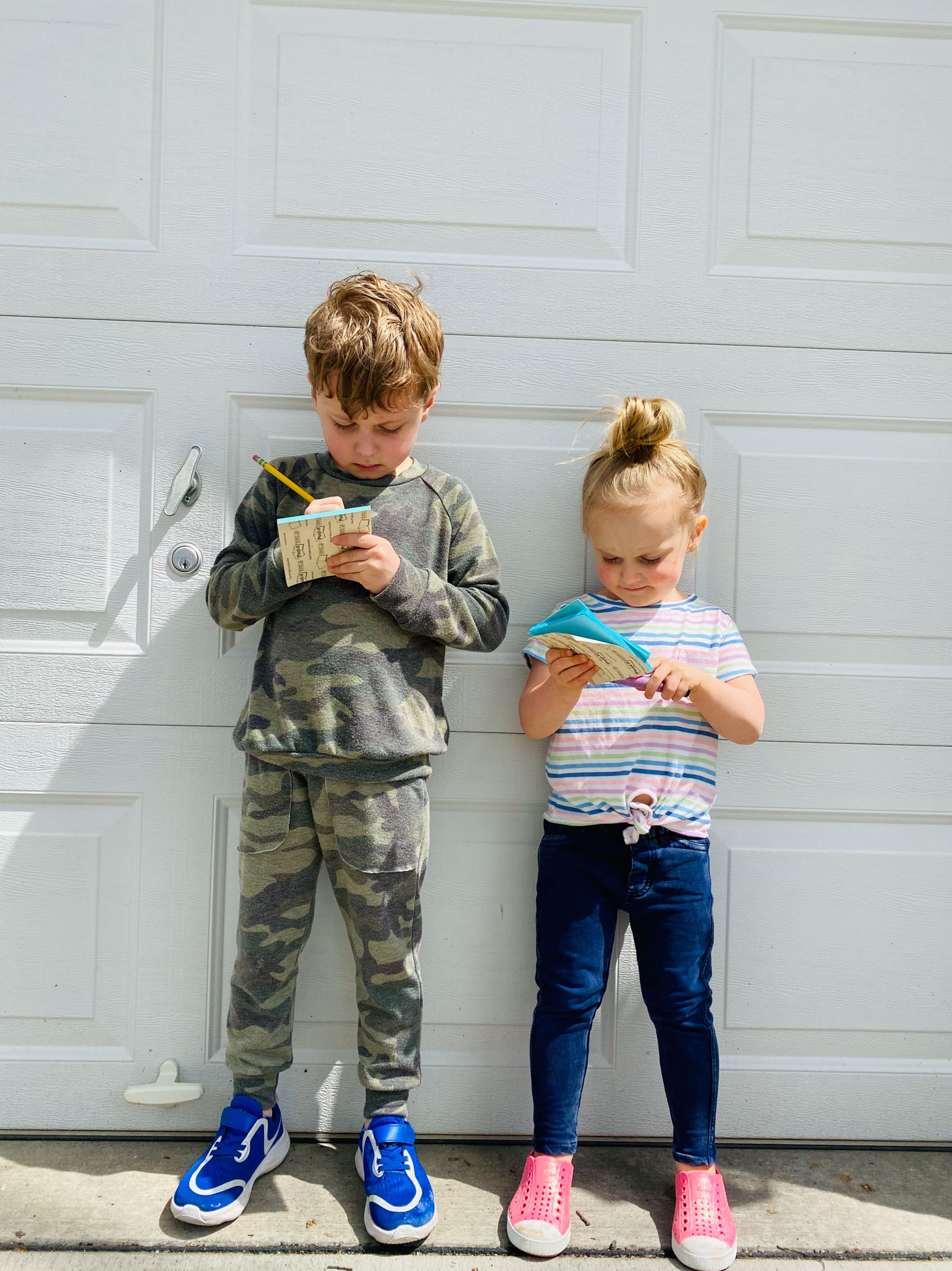 They insisted they bring their notepads and pencils/crayons on a car ride today.