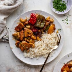 This sheet pan cashew chicken is the perfect weeknight dinner! The sauce is delish and my method for cooking the veggies and chicken works great, bringing the meal together in about 30 minutes. We adore this meal, which you can find inside my new book, Everyday Dinners!