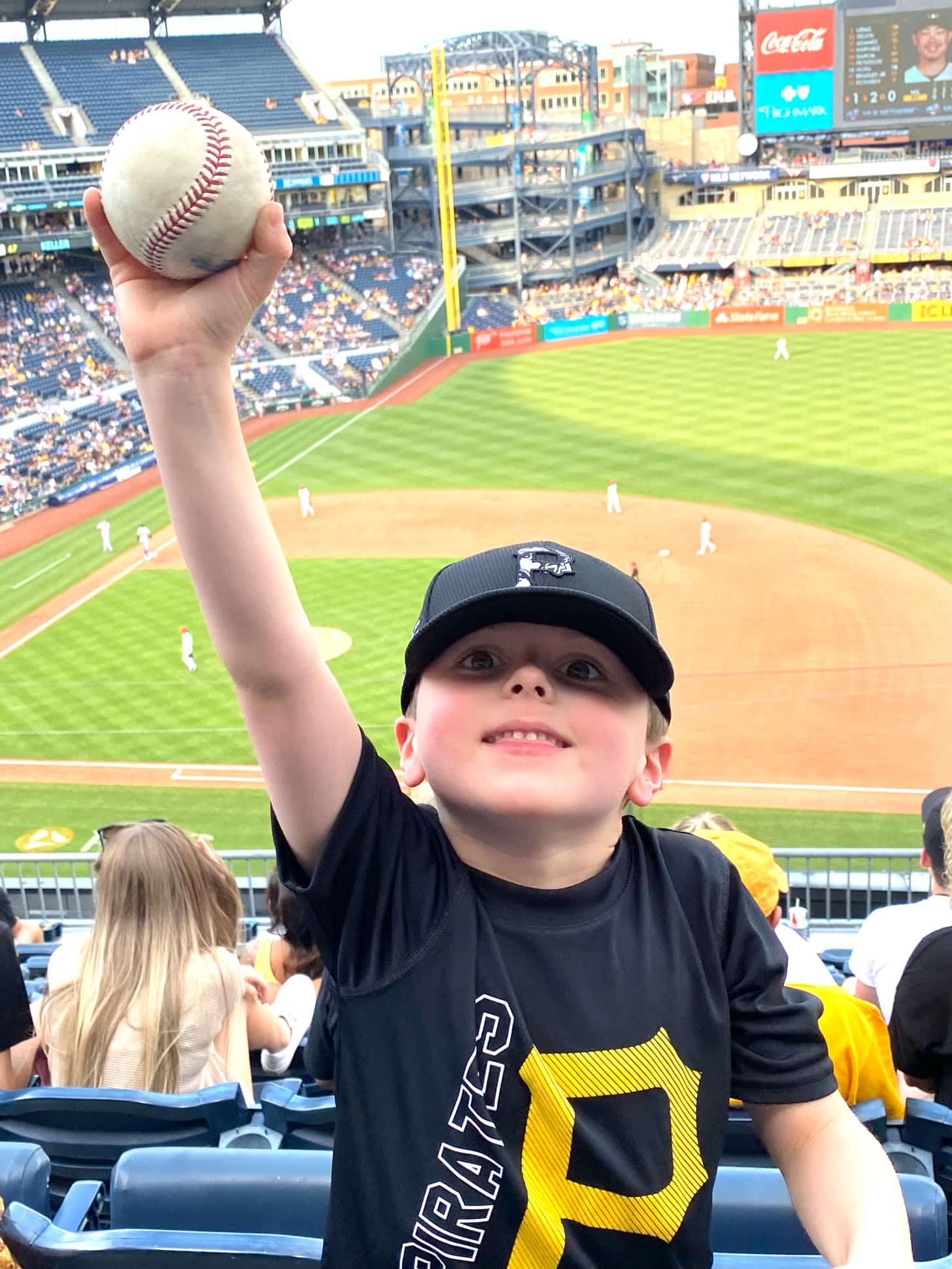 I read in the news that a little boy caught a foul ball in a Pirates game.