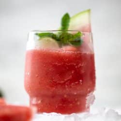 These frozen watermelon mojitos are frosting and refreshing, perfect for a super hot summer day. Make a big batch and serve to your friends!
