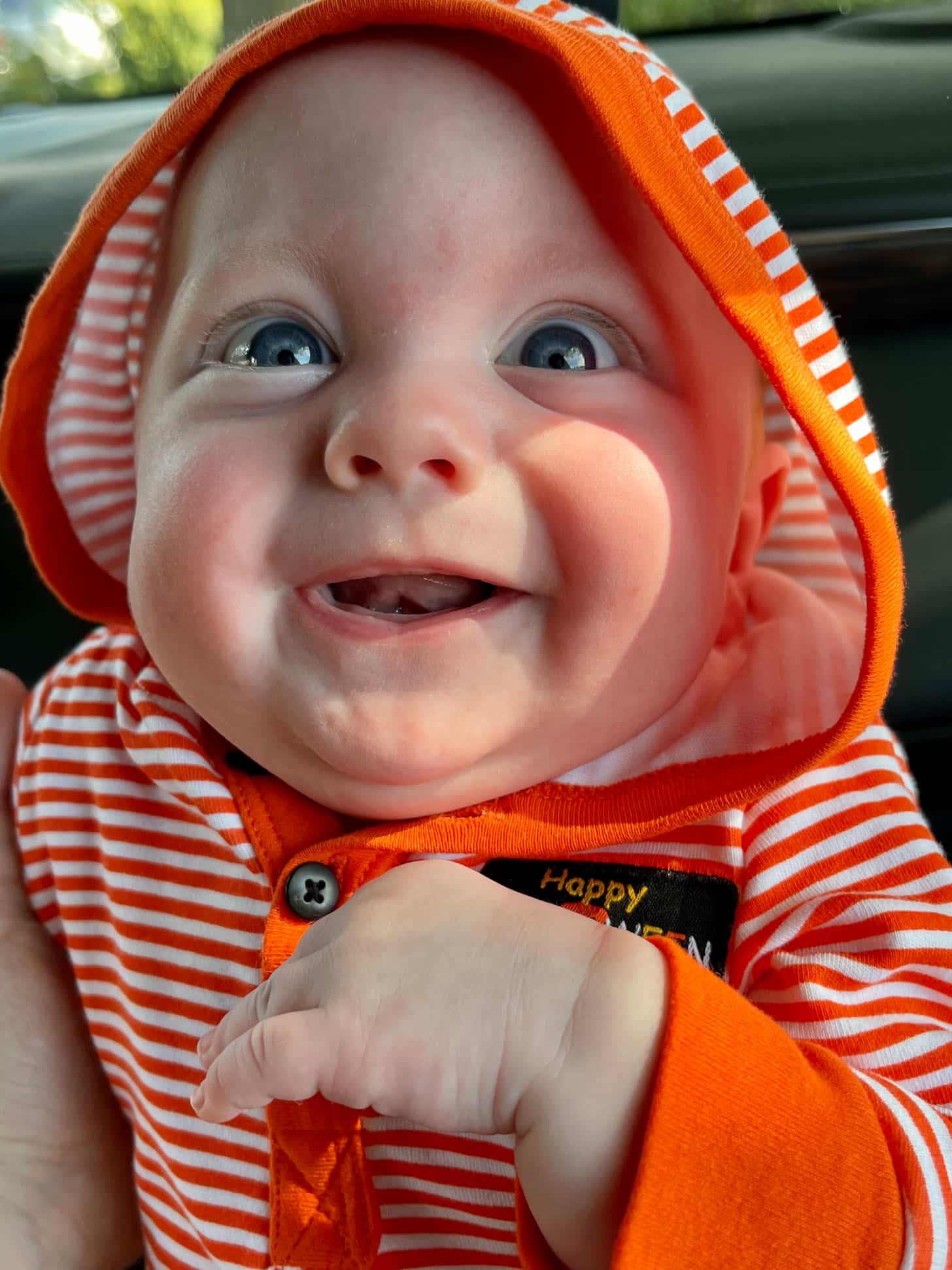 Love all the Halloween outfits on the kids. Please tell me you or Eddie are wearing themed shirts too? LOL Love Jordan’s smile, but that frown is going to get him out of a lot of trouble too :-) Those apple cider doughnuts look incredible!!