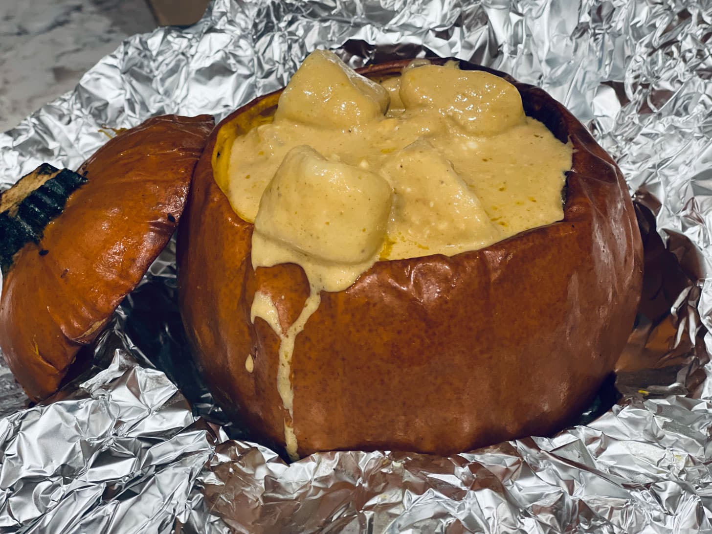 This is pumpkin gnocchi in an actual pumpkin. Whoa whoa whoa.
