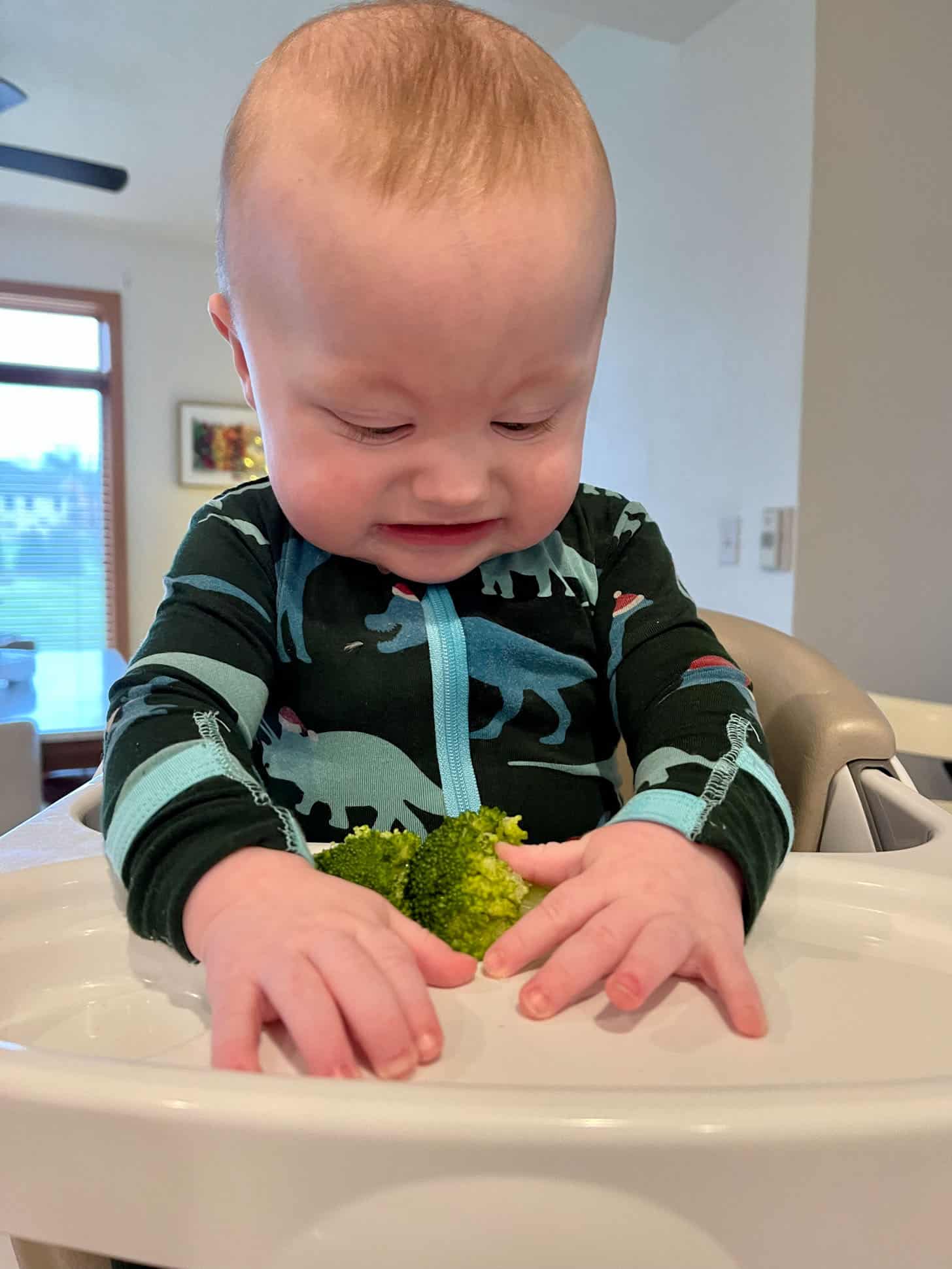 Last week Jordan started to eat real food! Honestly he is not into it yet… ha! His face says it all.