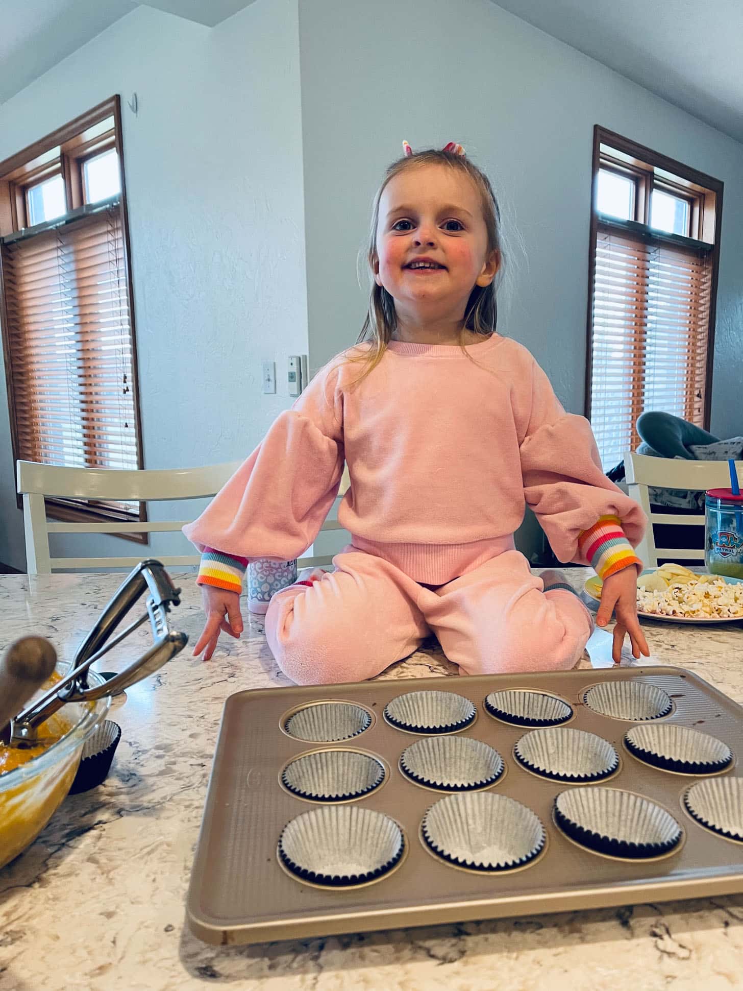 Emilia and I made muffins Thursday morning for Max and Eddie to take to a hockey tournament over the weekend.