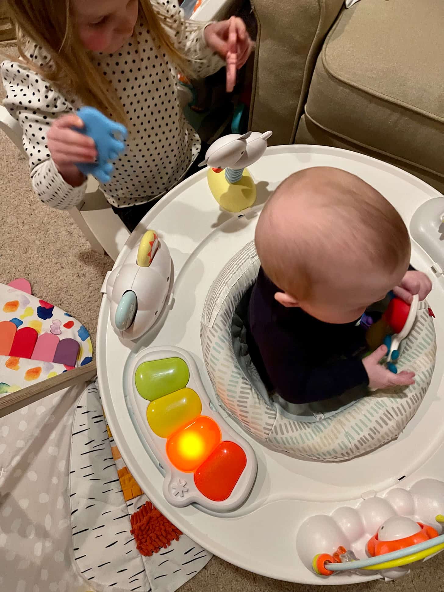 Emilia pulls up a chair and sits and plays with Jordan in this jumper. It is so cute.