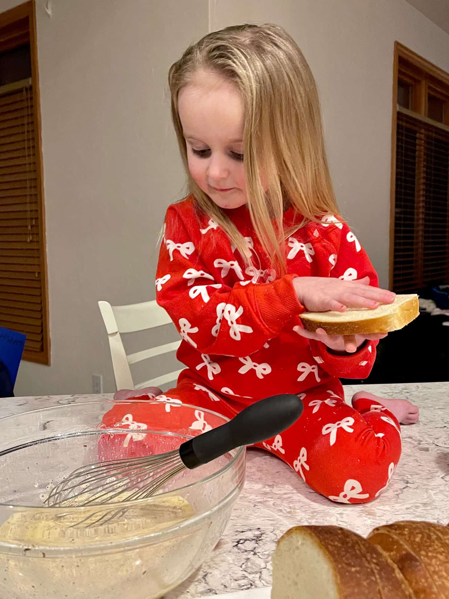 Emilia is obsessed with making french toast. Except she calls it “cinnamon french toast crunch.”