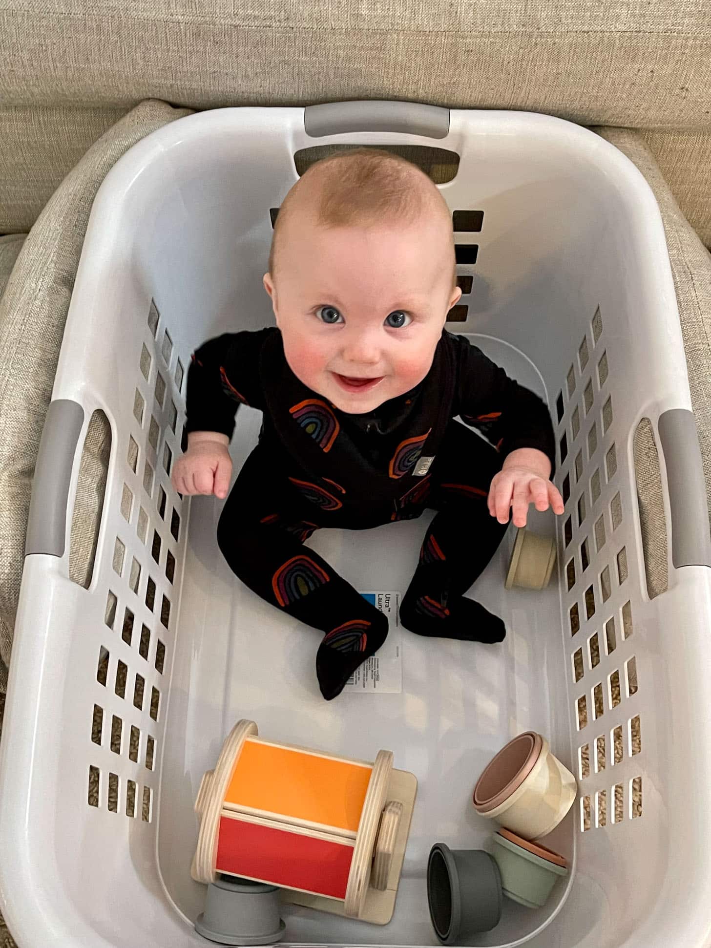 Baby in a basket! Max and Emilia think this is the funniest thing ever.