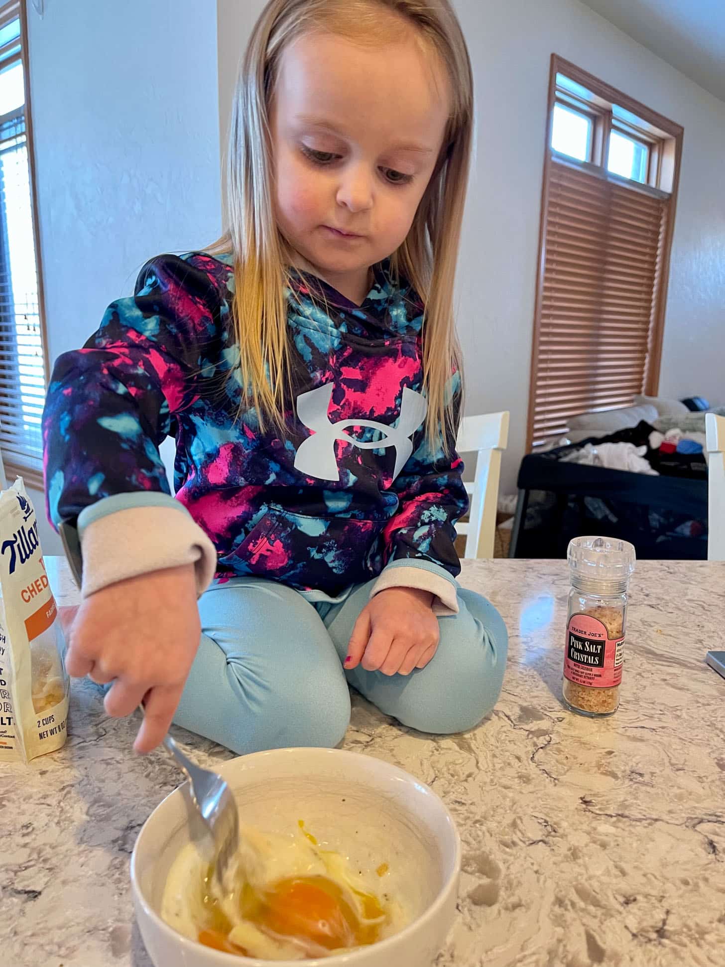 She loves making her own (very doctored up) scrambled eggs.