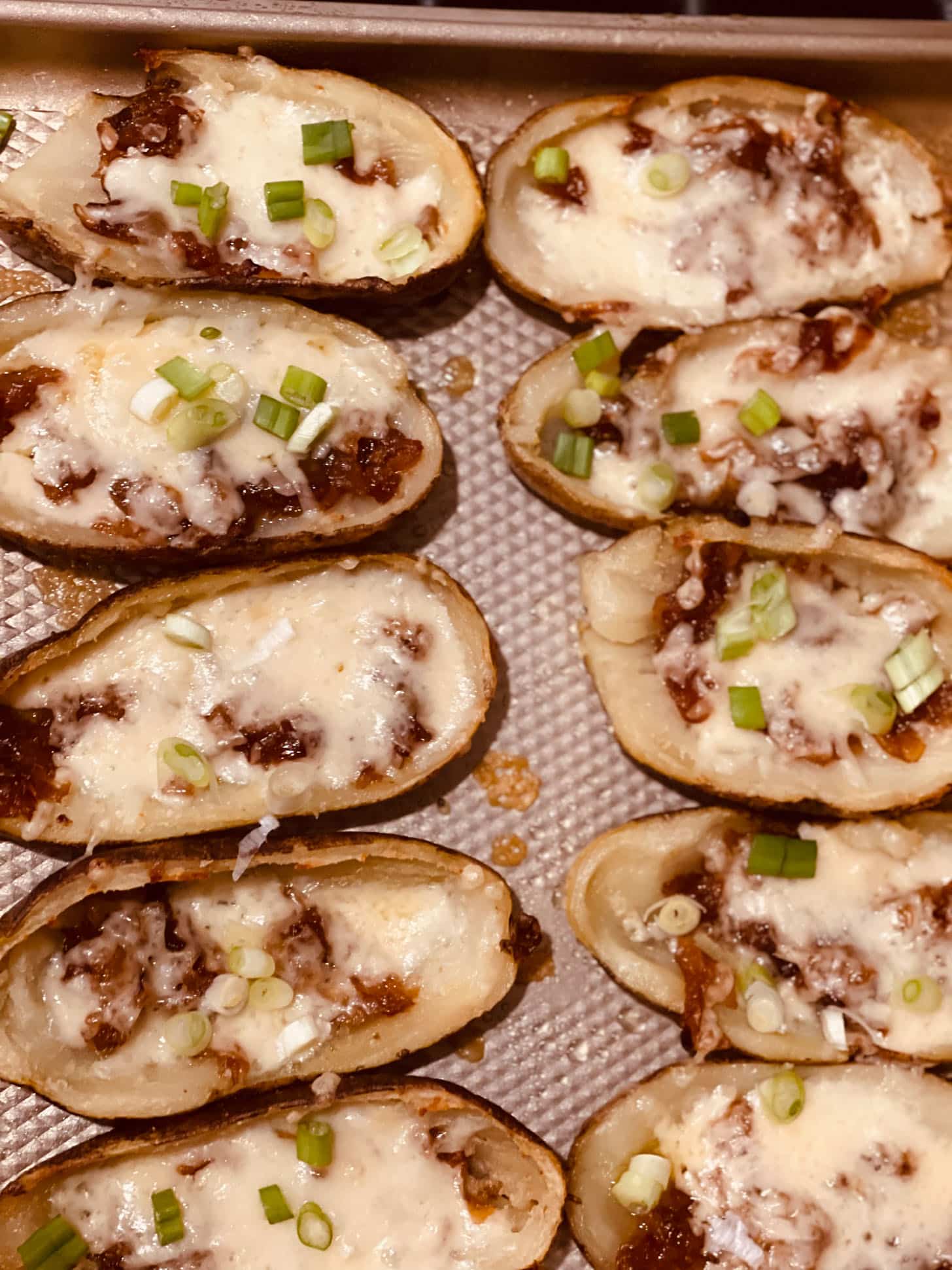 This a horrific photo of my caramelized onion potato skins that I made for the super bowl.