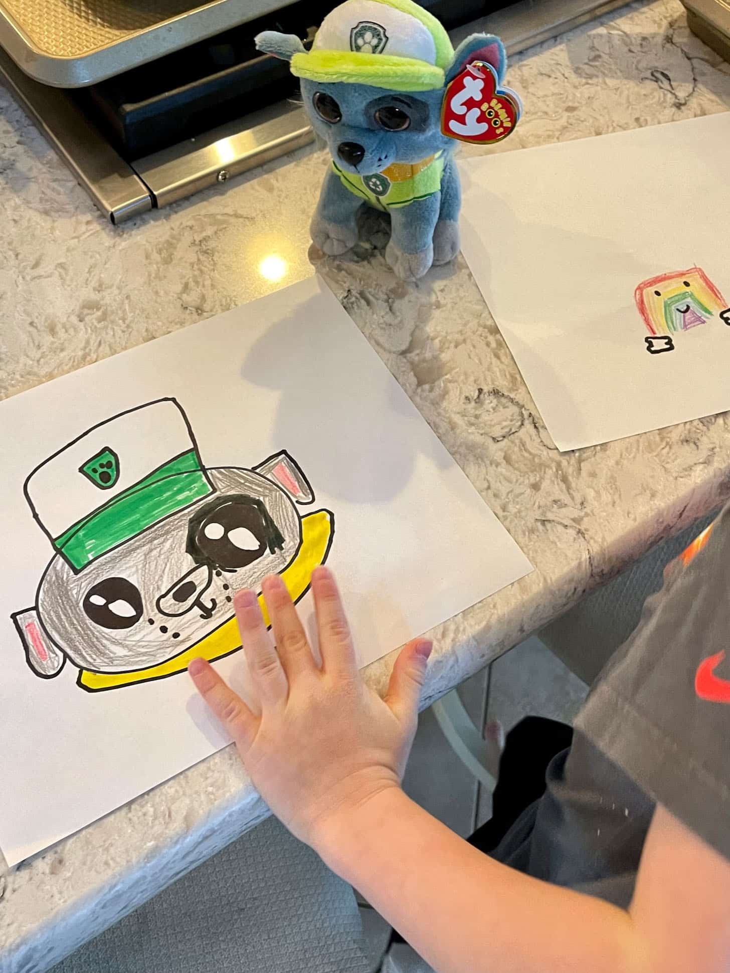 I love how much Max loves art. He grabbed Emilia’s paw patrol character, set it up on the counter and drew the face. This is how Eddie has drawn things for Max for years, and it was so cool to watch him from the corner of my eye just start doing it without saying anything! He drew this for Emilia. MY HEART!