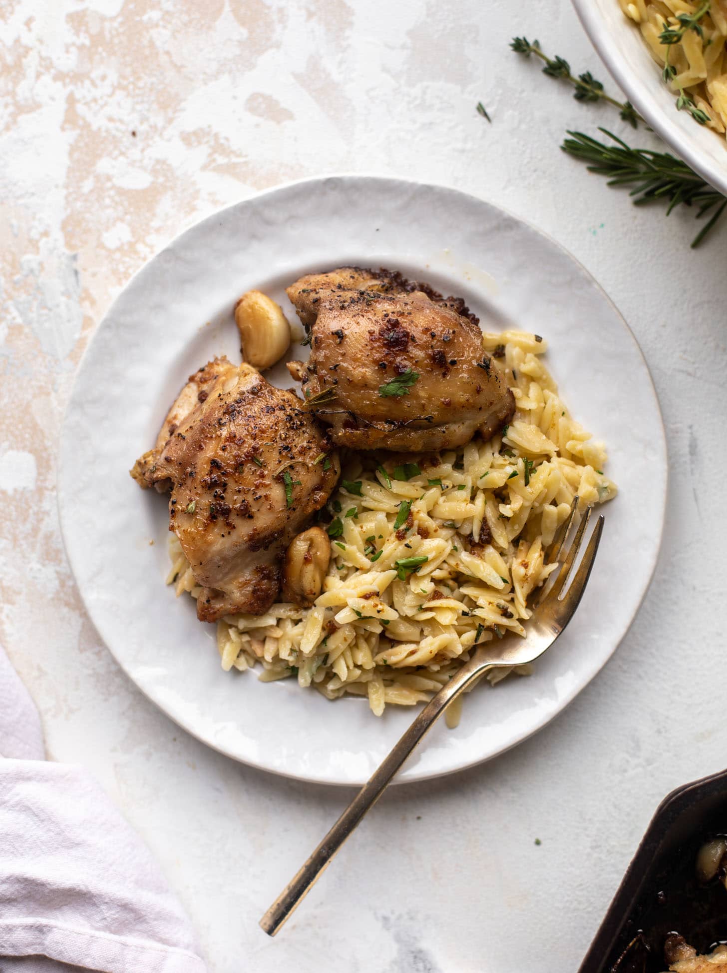 Next, try my weeknight skillet chicken with this parmesan orzo. Best combo ever.
