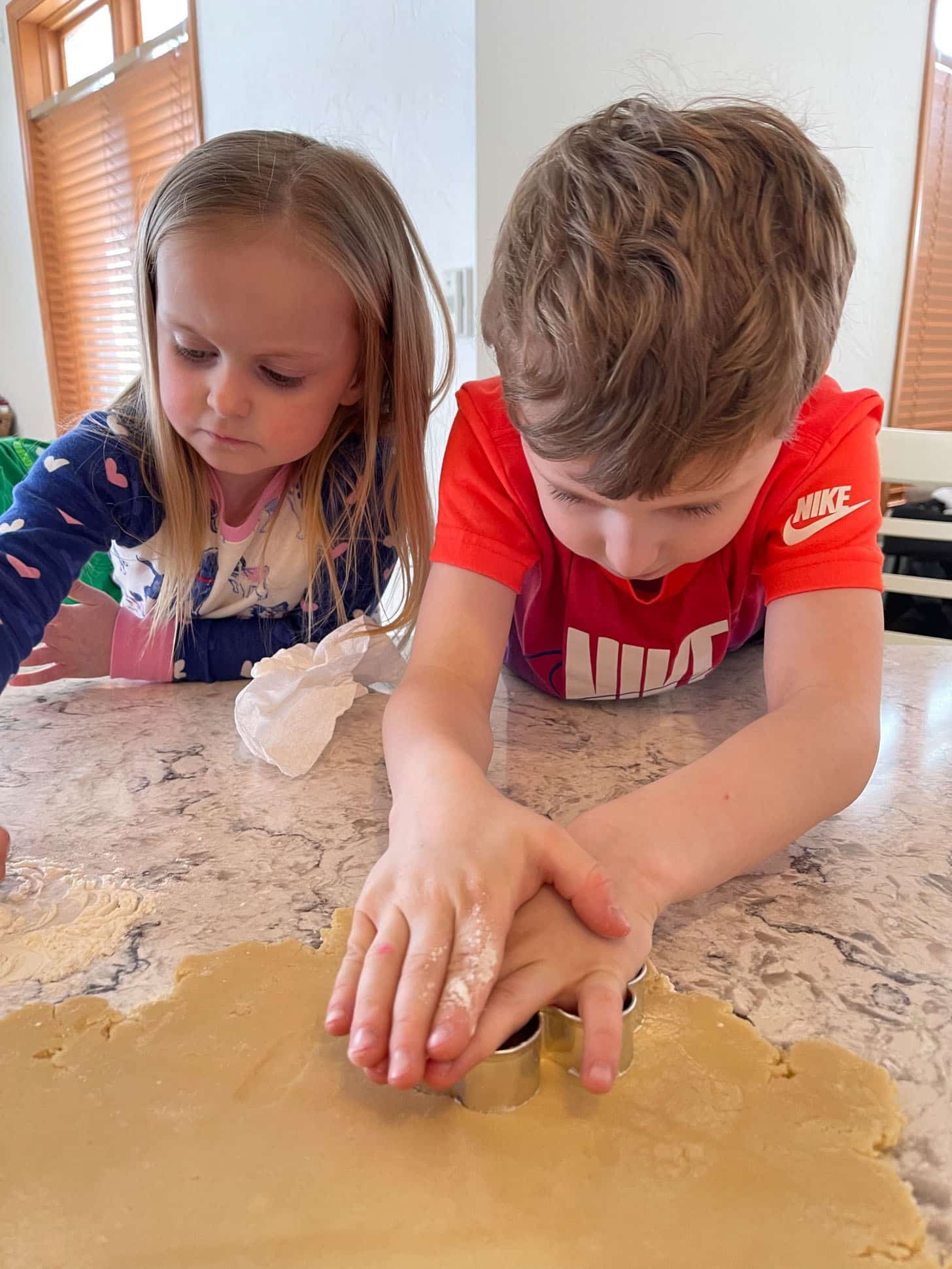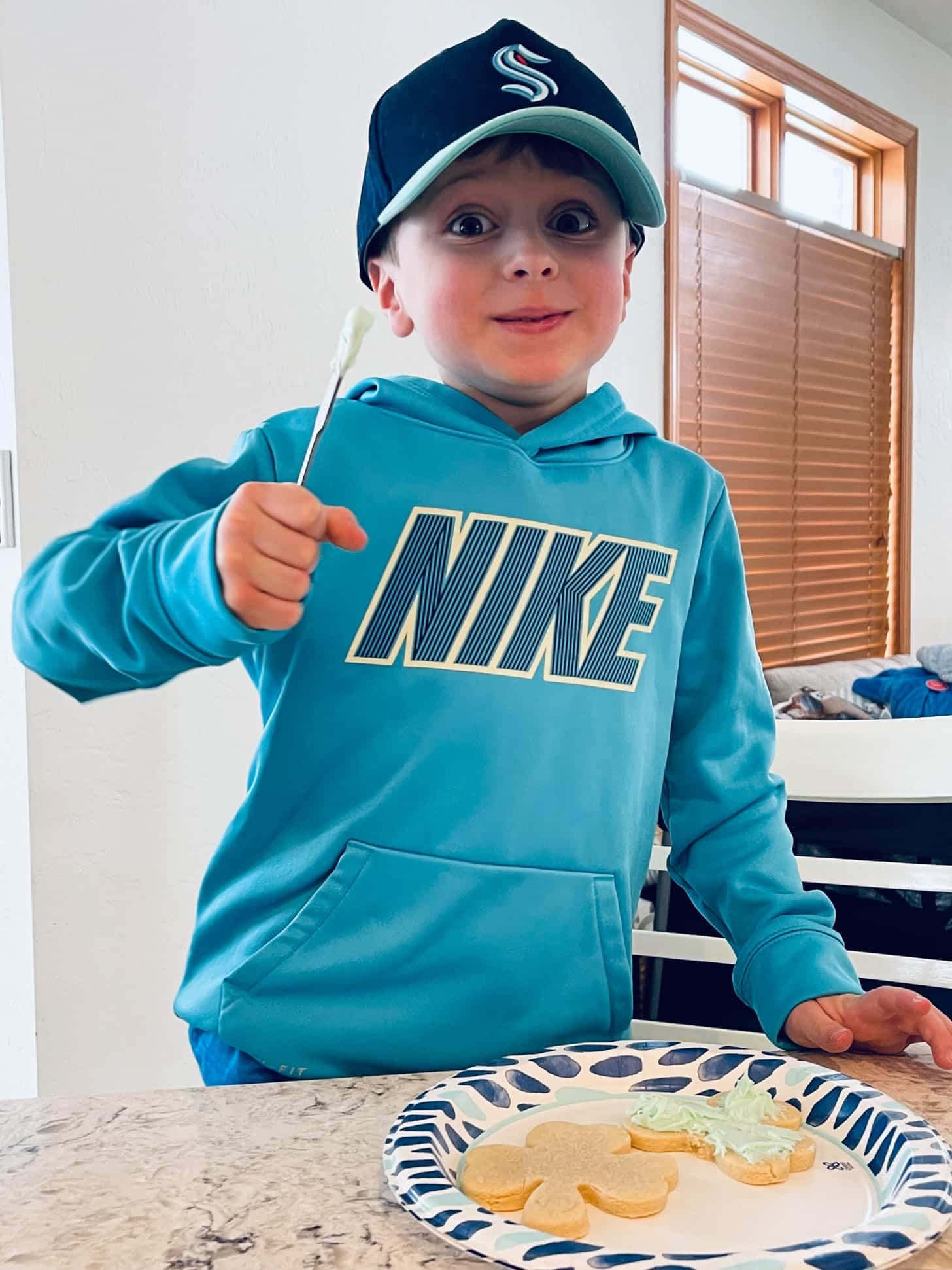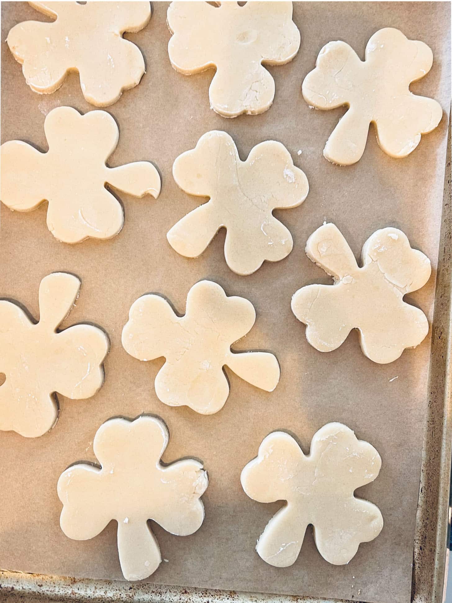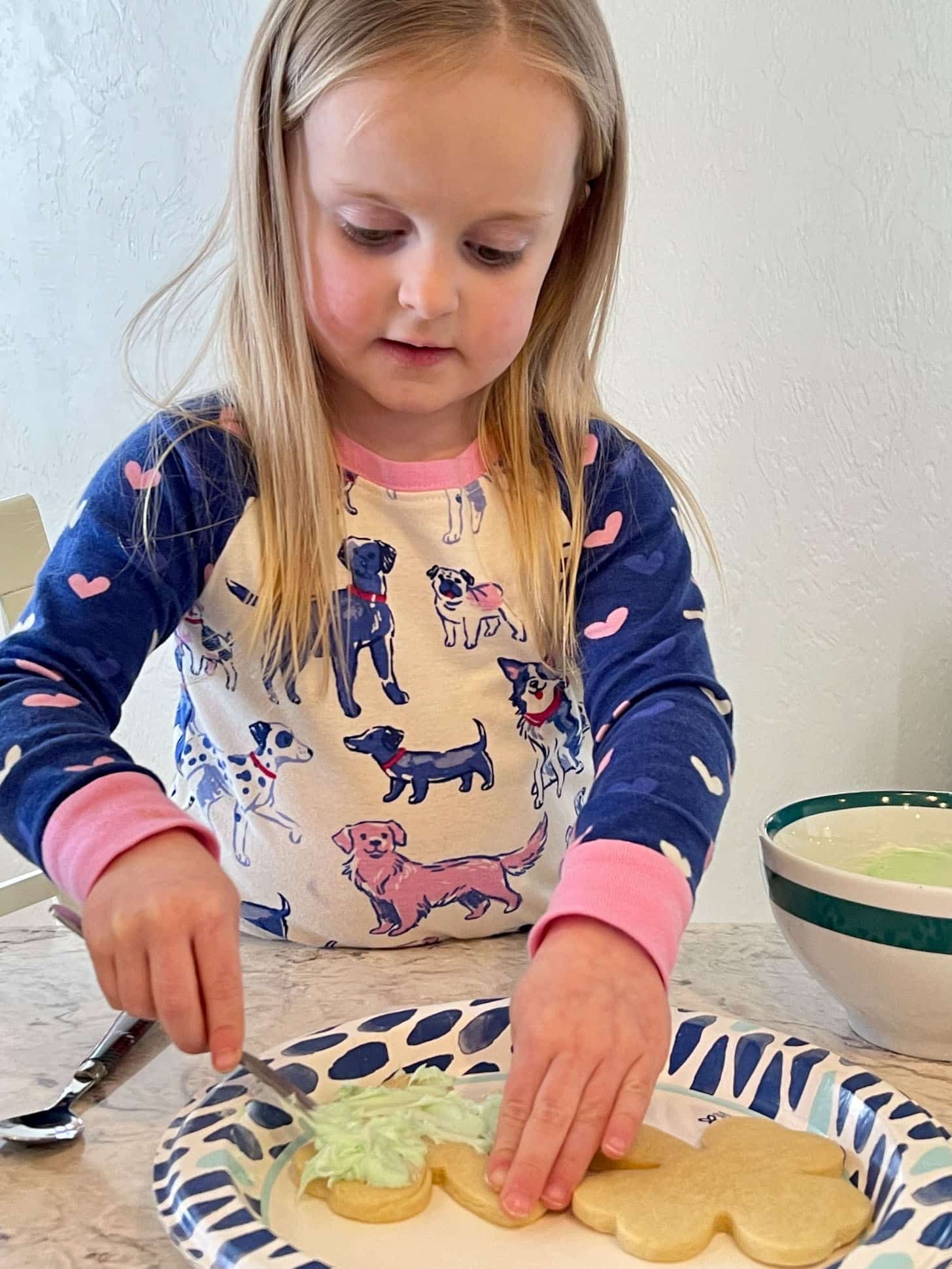 Snowy morning, so we made shamrock cookies.