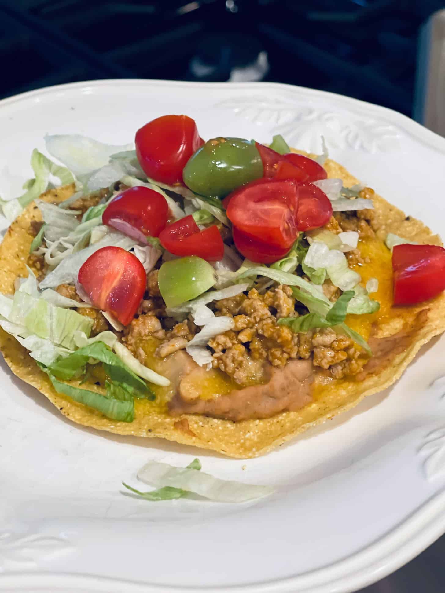 Made turkey taco tostadas this week! This was Emilia’s so it wasn’t fully loaded… but we added pickled onions, sour cream, cilantro, salsa!