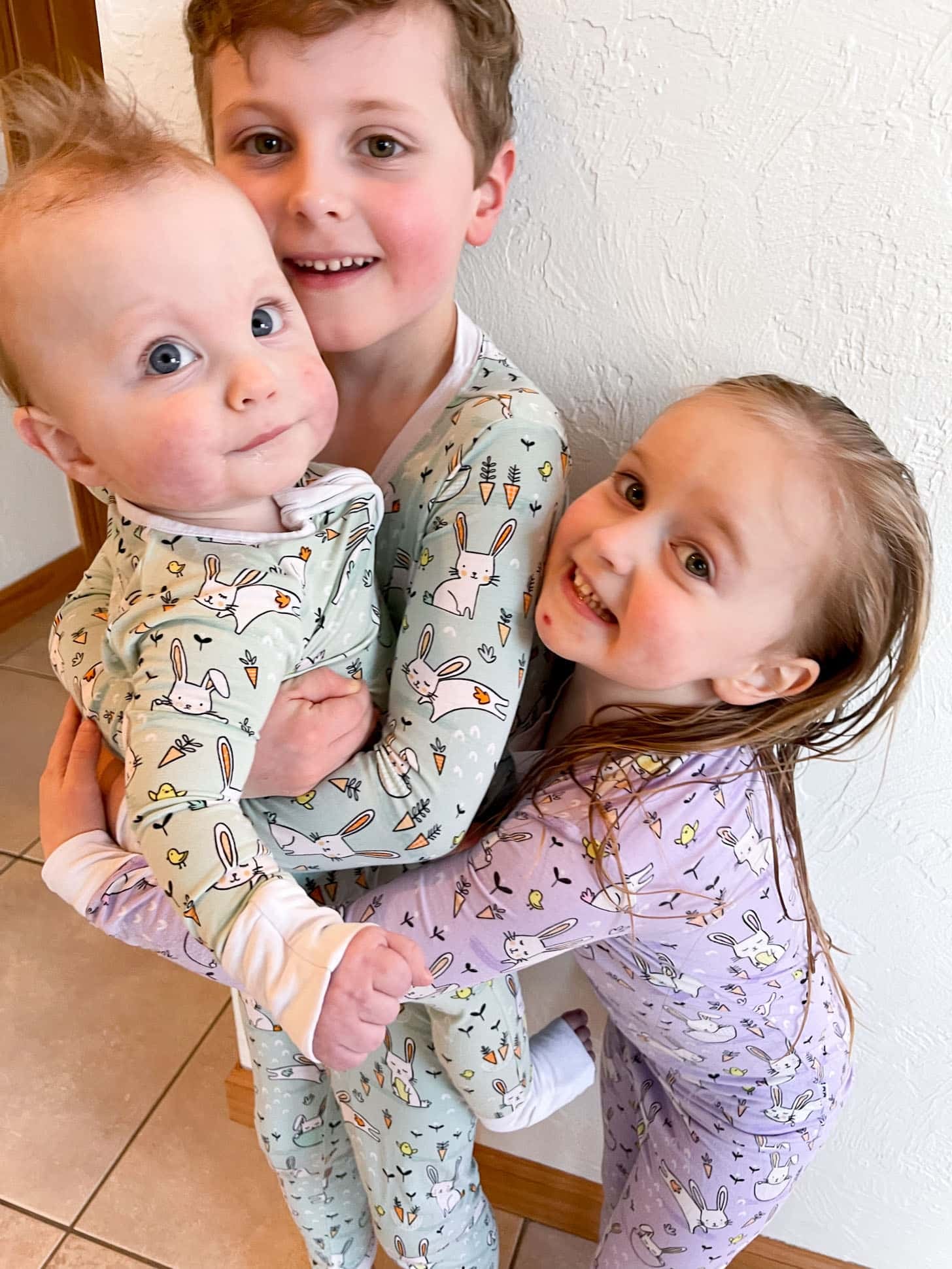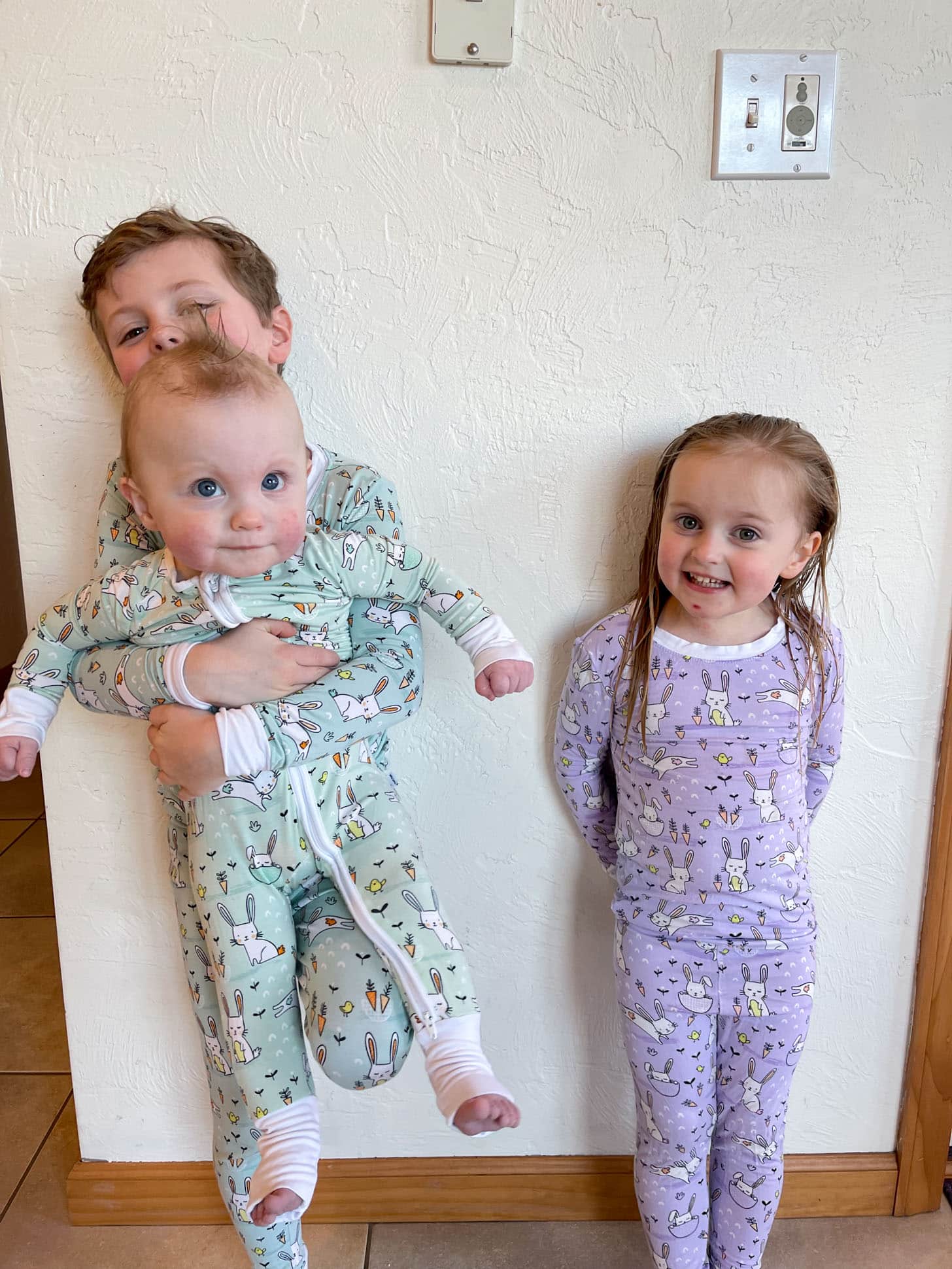 And then we got in our easter PJs! So these are the kids’ PJs from last year… see here!