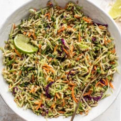 This broccoli slaw is my favorite summer dish to bring to a cookout or potluck! You can prep the entire thing ahead of time, it is so super crunchy and refreshing. It’s the perfect side dish!