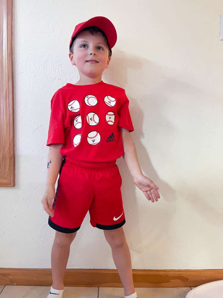 I loved this red outfit that Max put together. Even if it made Eddie crazy because he mixed Nike, Adidas and UA.