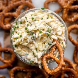 This jarlsberg cheese dip is one of my favorite snacks to make for guests. You can make it ahead of time and serve with crackers, pretzels or chips. It’s creamy, cheesy, delicious and such a crowd pleaser!
