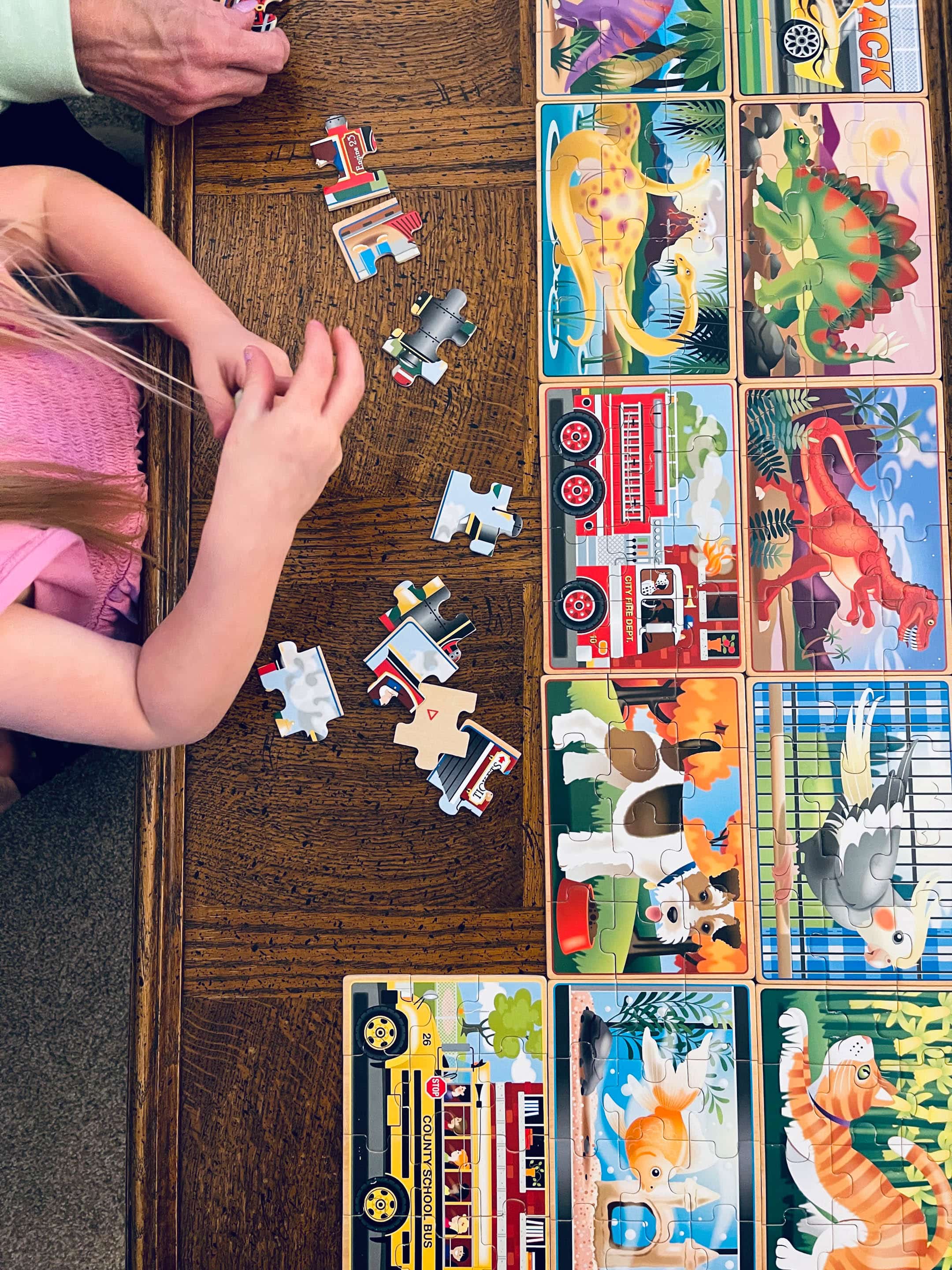 Emilia loves doing puzzles with grandma.