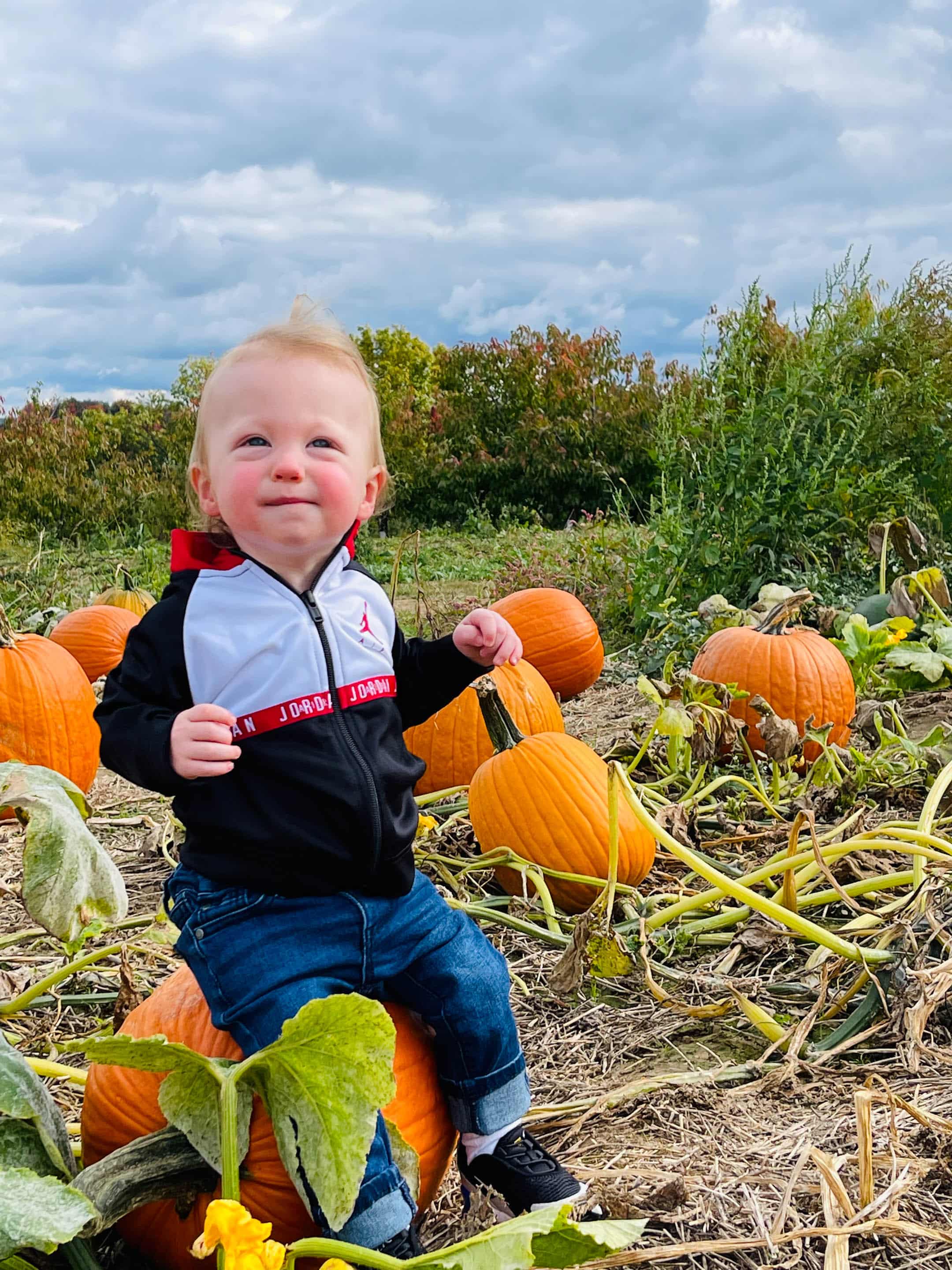 Baby on a pumpkin.