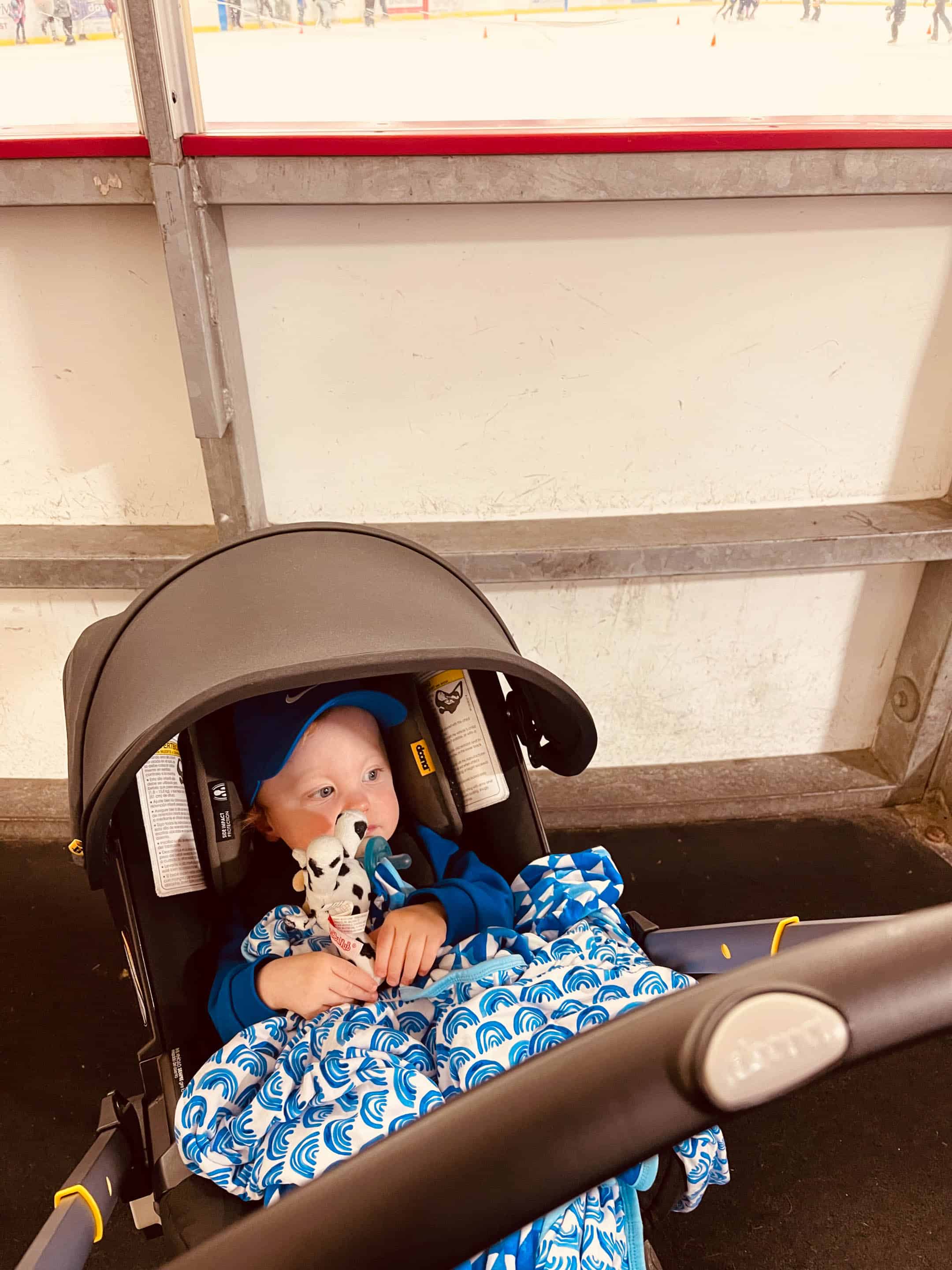 Little bubs waiting on his bro and sis and the hockey rink.