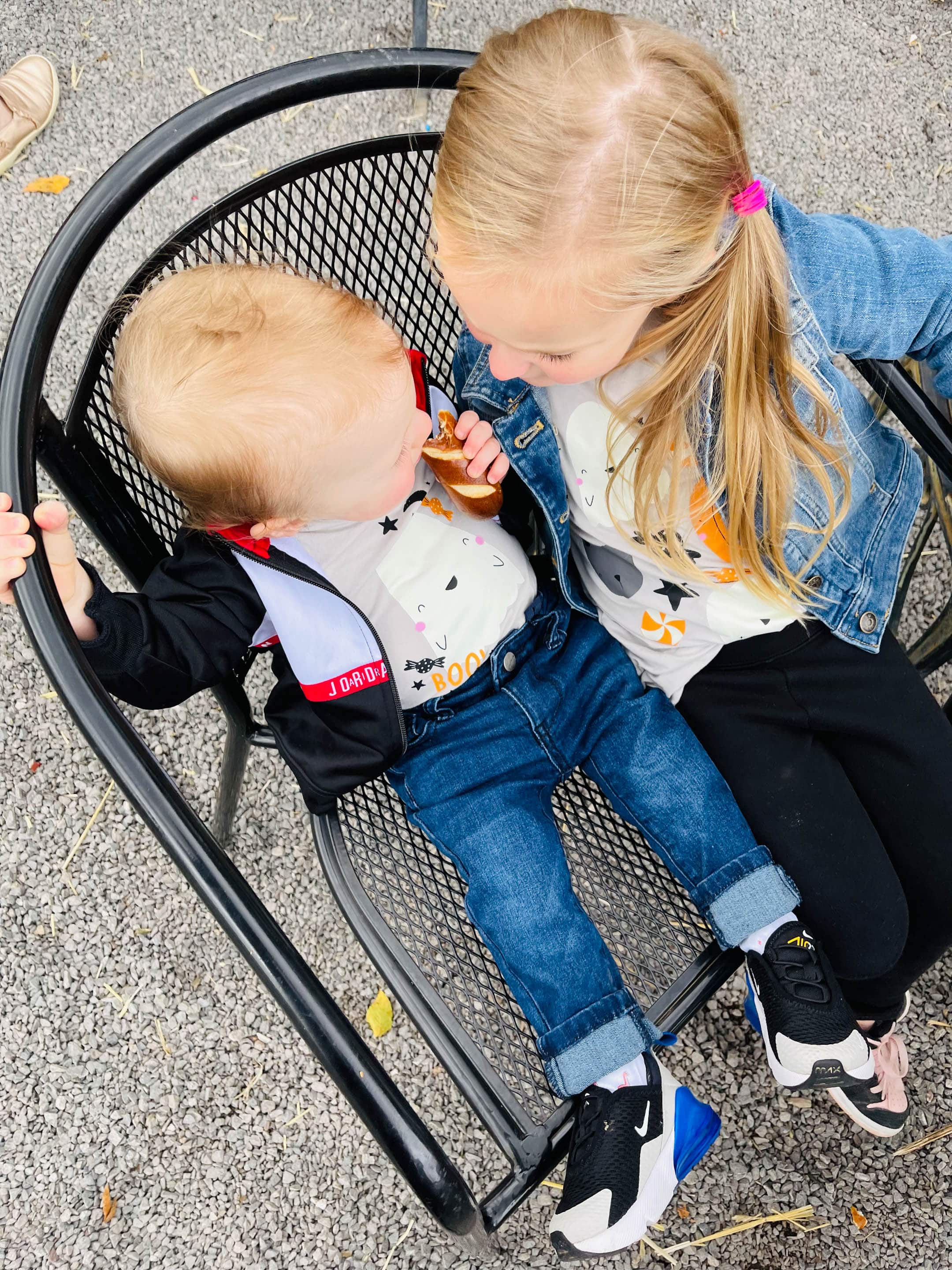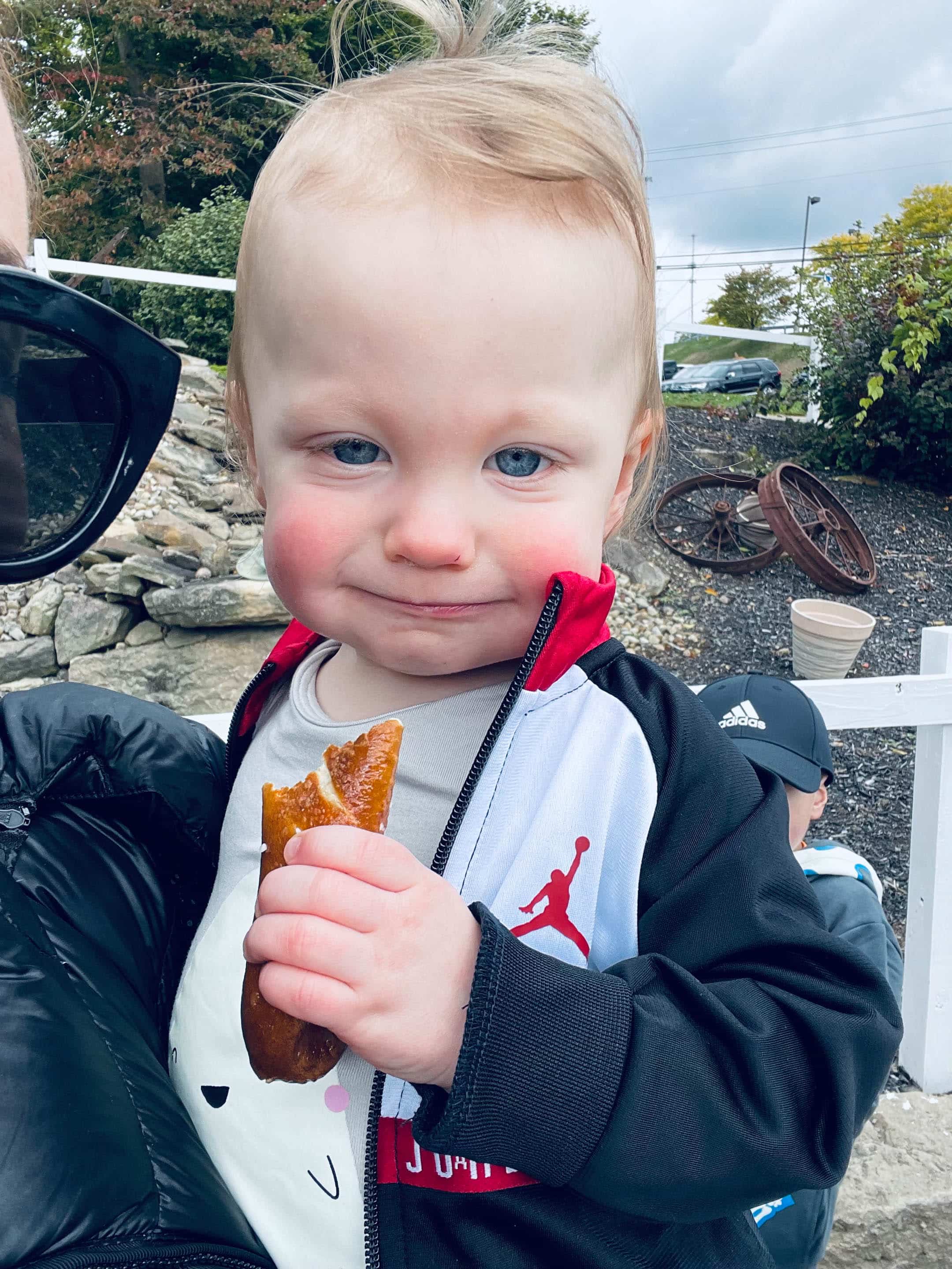 Very happy once he got a pretzel.