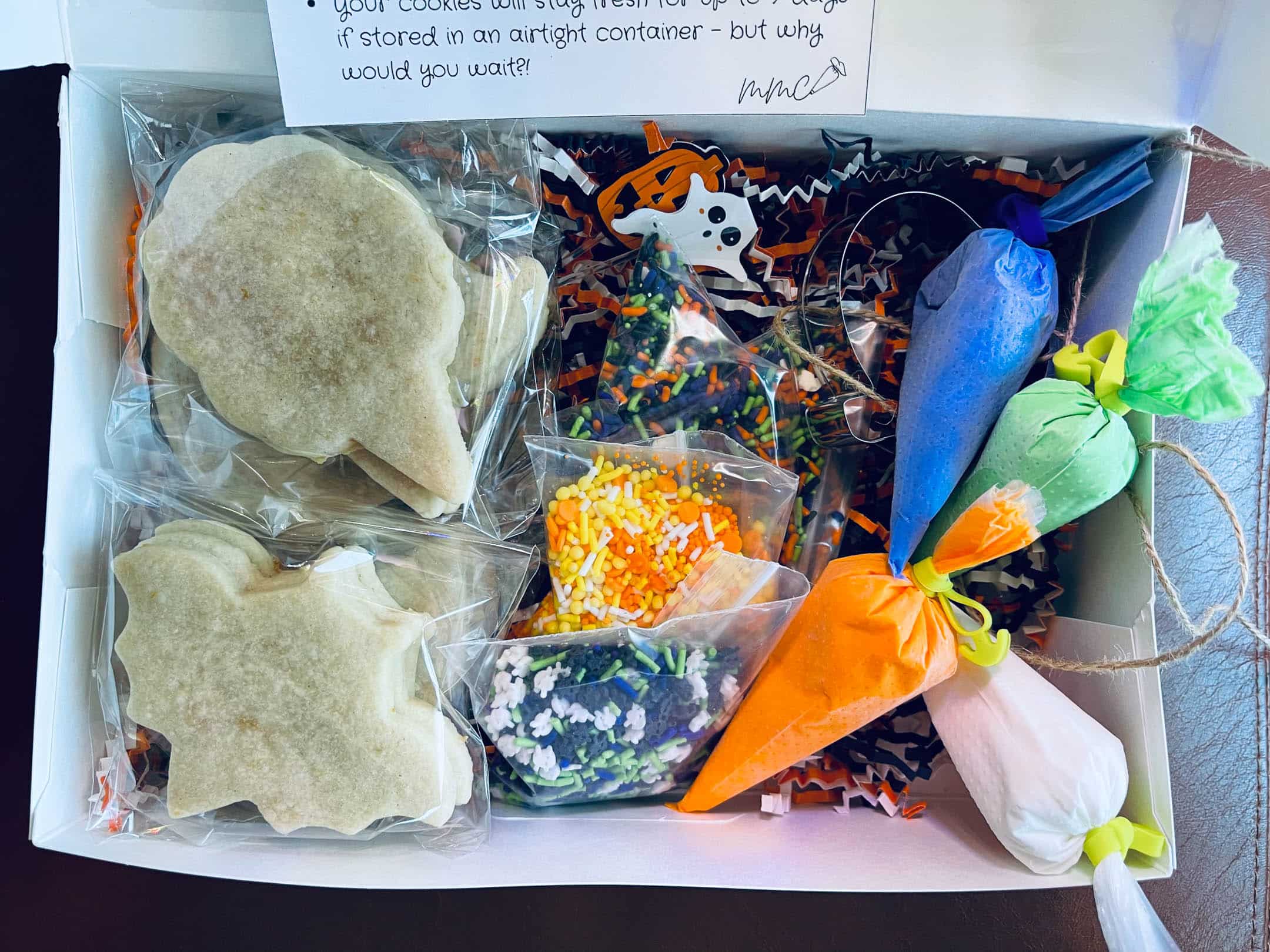 I had ordered the cutest Halloween cookie decorating kit from Micah Made Cookies.
