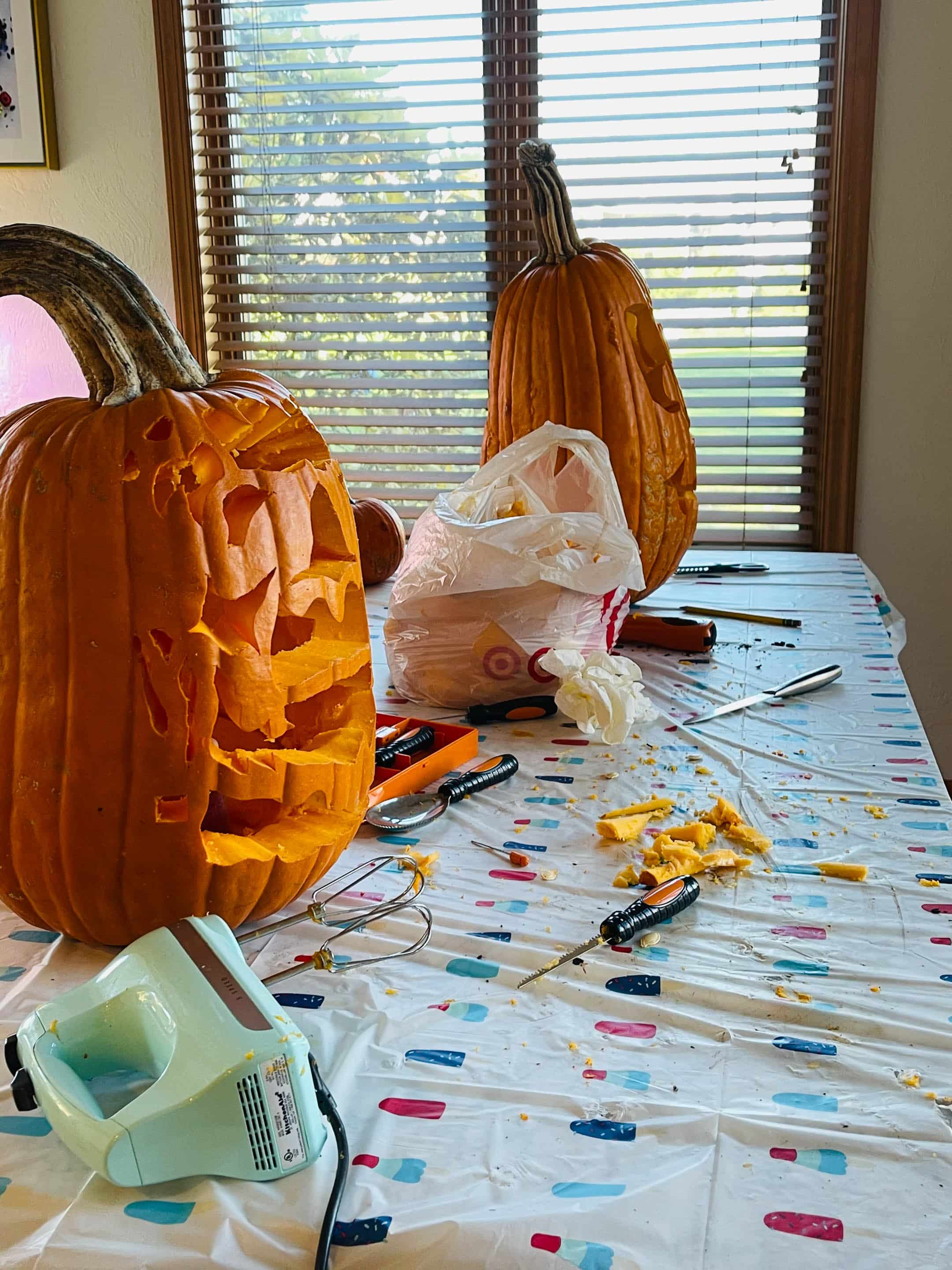 Eddie’s pumpkin carving station. I don’t even want to tell you that one of these fell off the table and shattered after this photo.