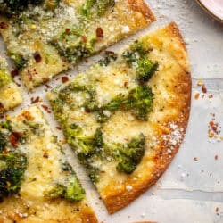 That’s where my inspo came for these broccoli cheddar tortilla pizzas. I actually tested a few broccoli cheddar sheet pan pizzas at the beginning of this year, but nothing blew me away. They just didn’t WOW me like other recipes.