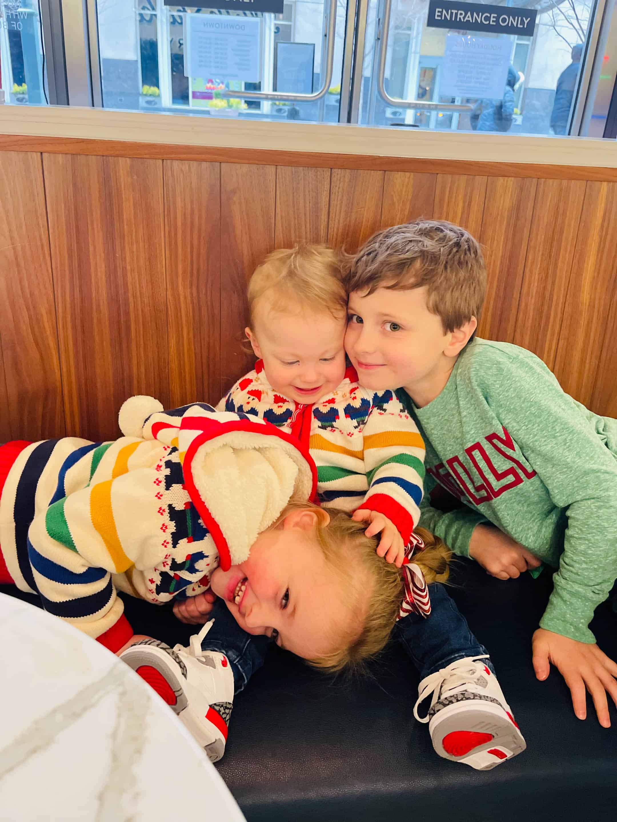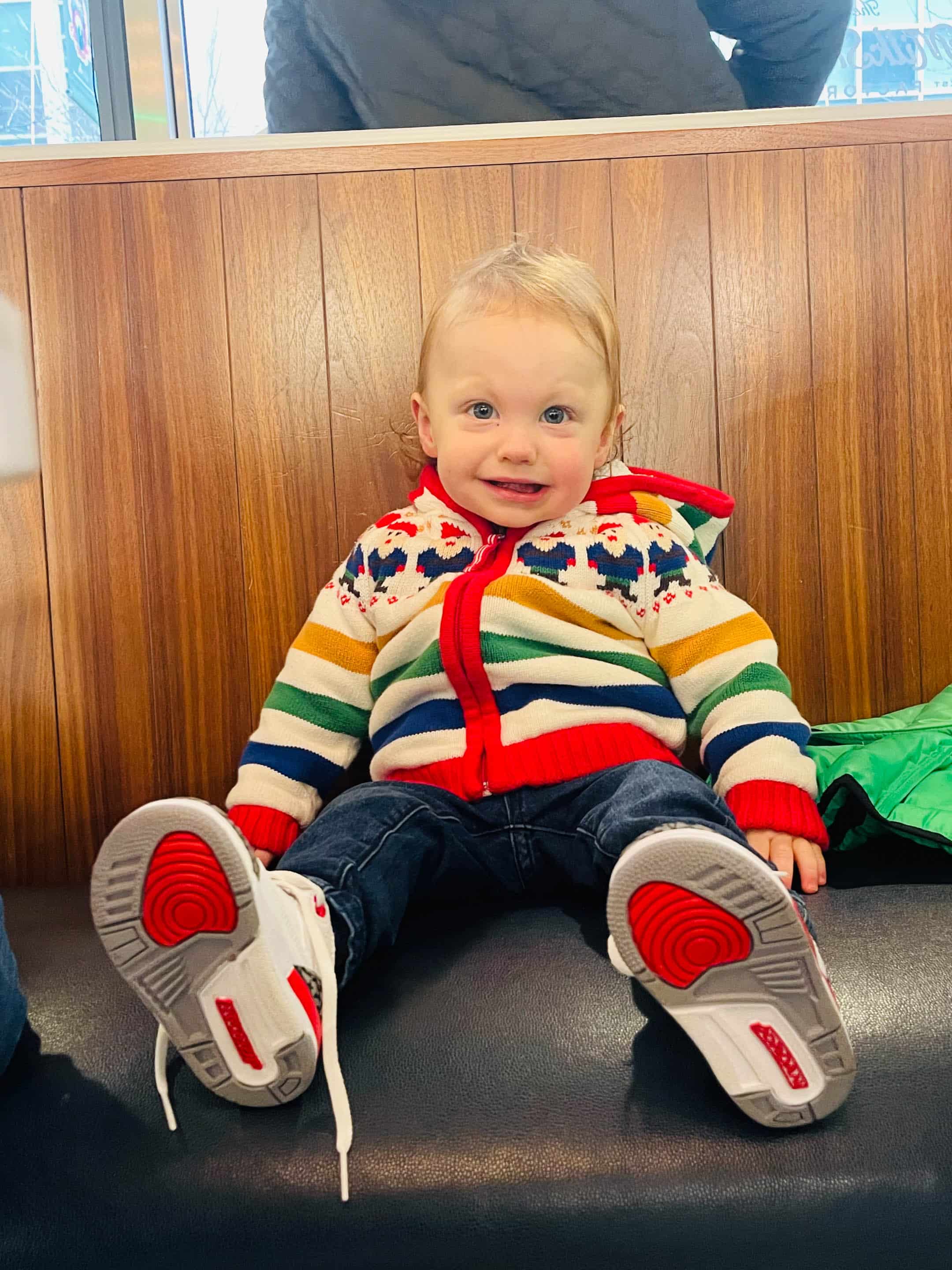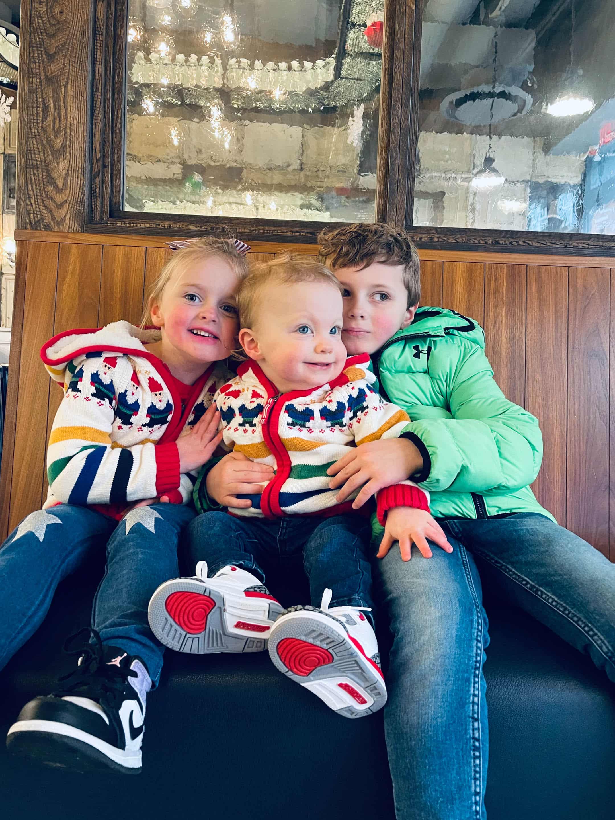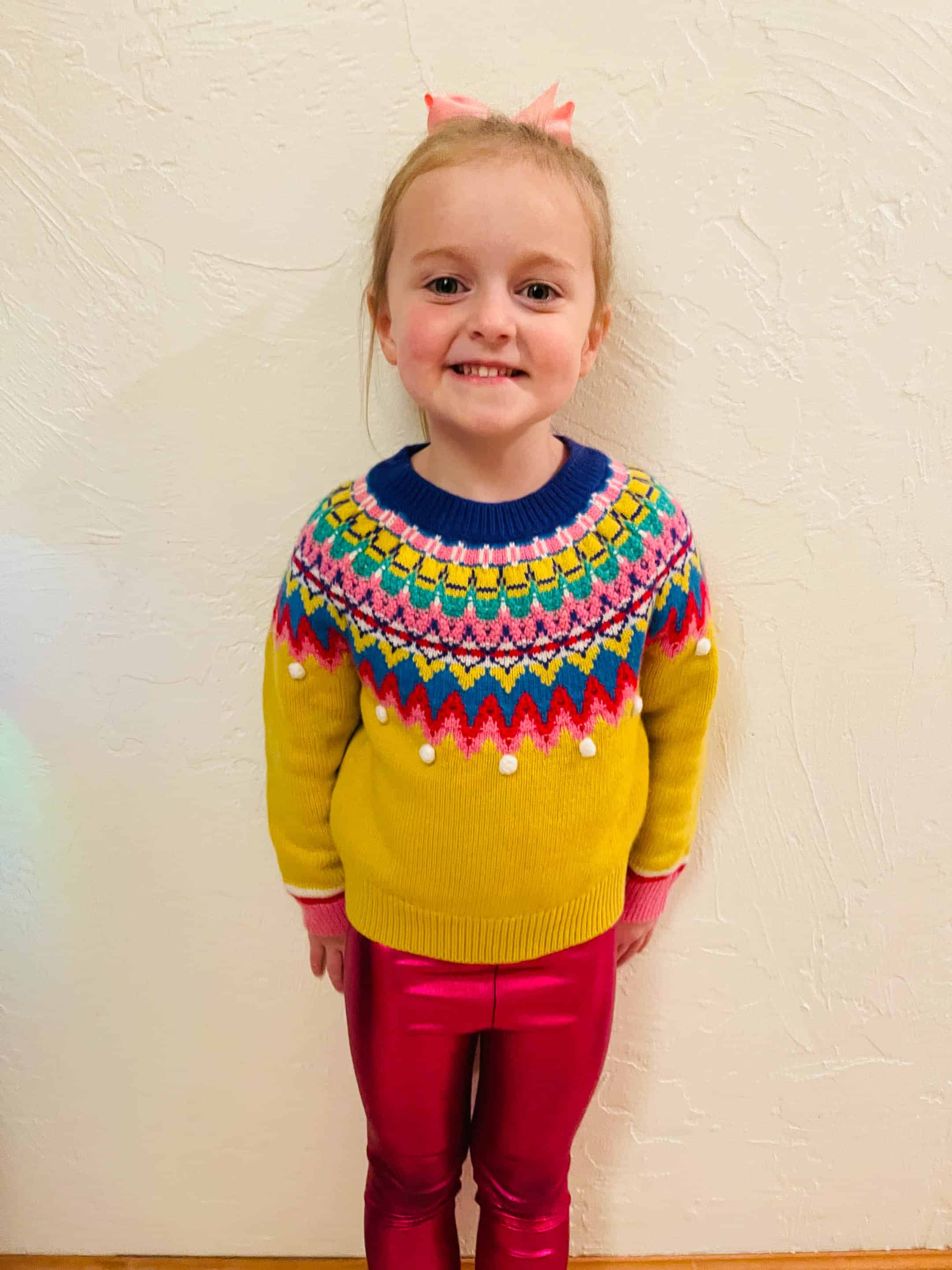 Jordan’s sweater was Max’s in 2016. I bought one larger for him in 2018 so Emilia could wear the smaller one. I love this sweater so much!! It’s from Hanna Anderson but they no longer carry it.