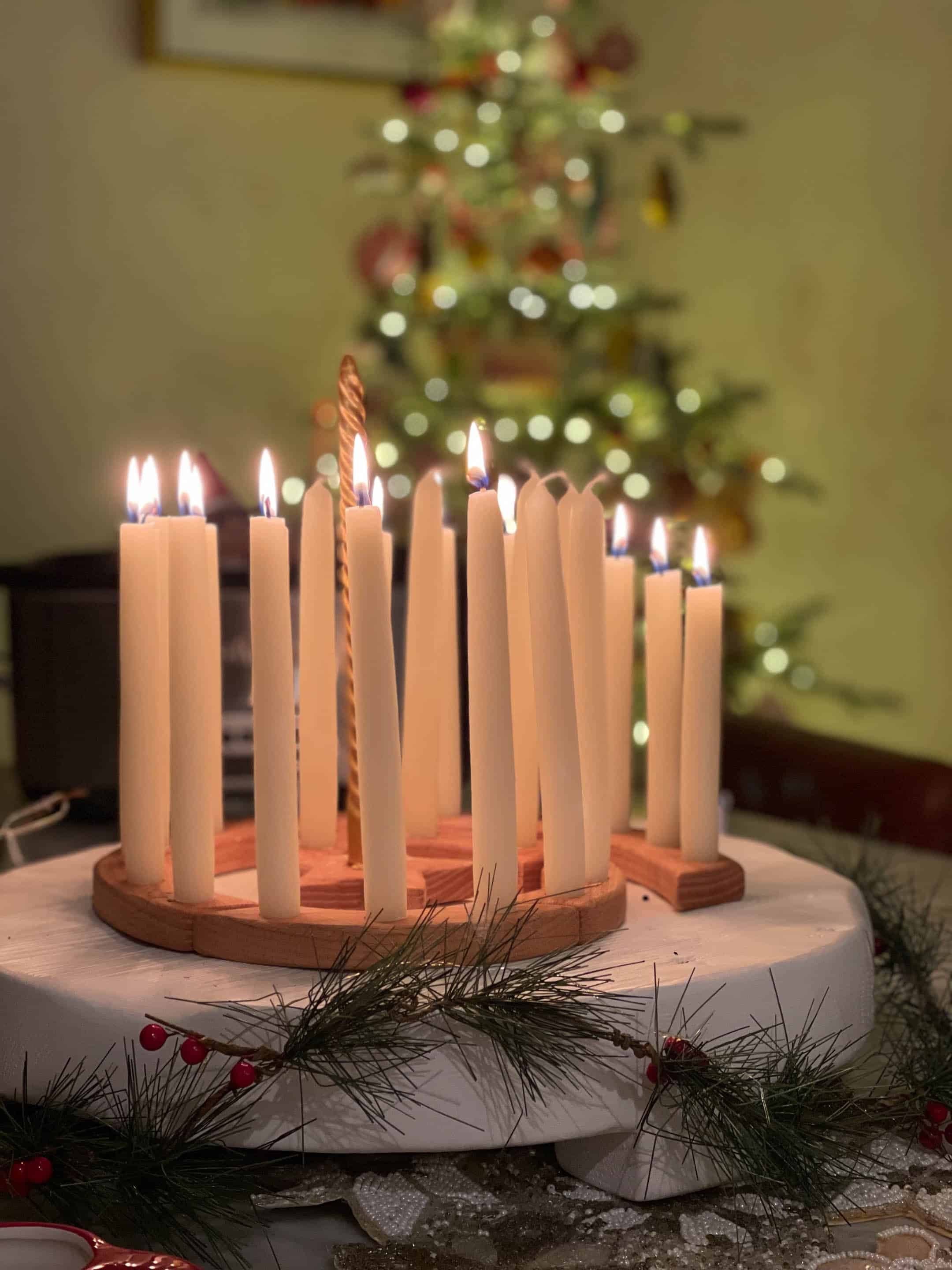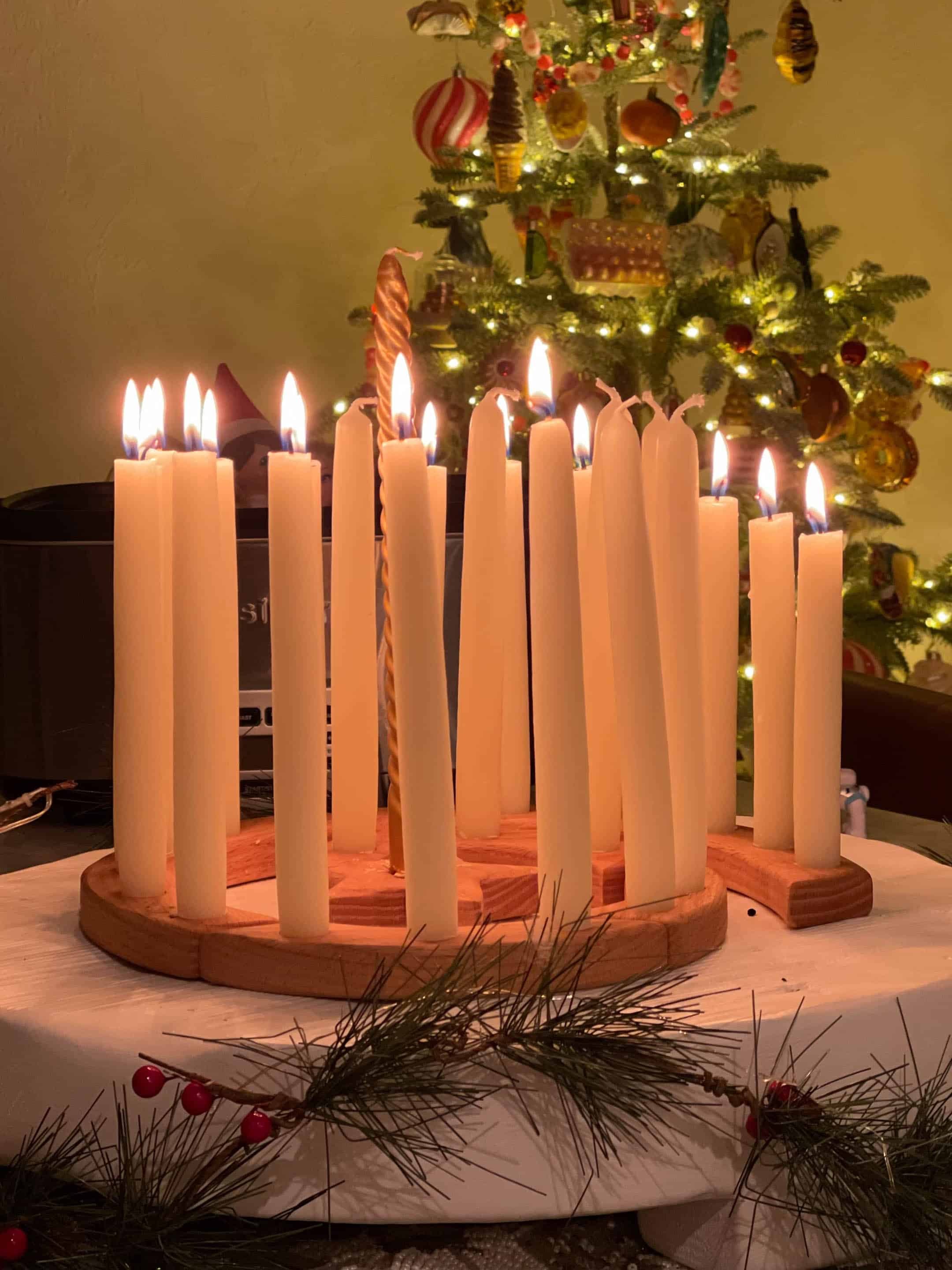 Still enjoying our advent spiral. Don’t mind the elf in a hot tub marshmallow bath behind it.